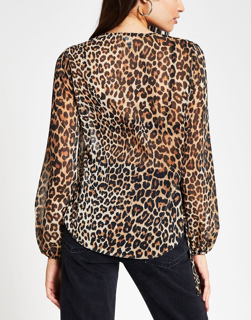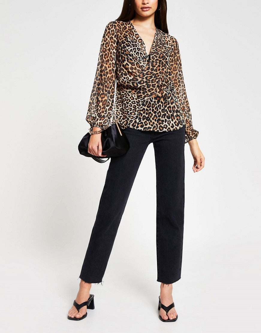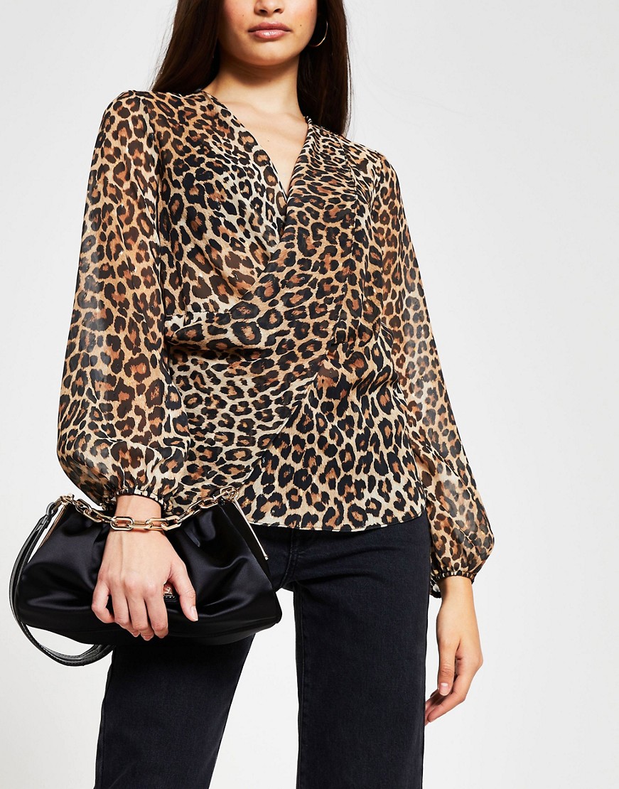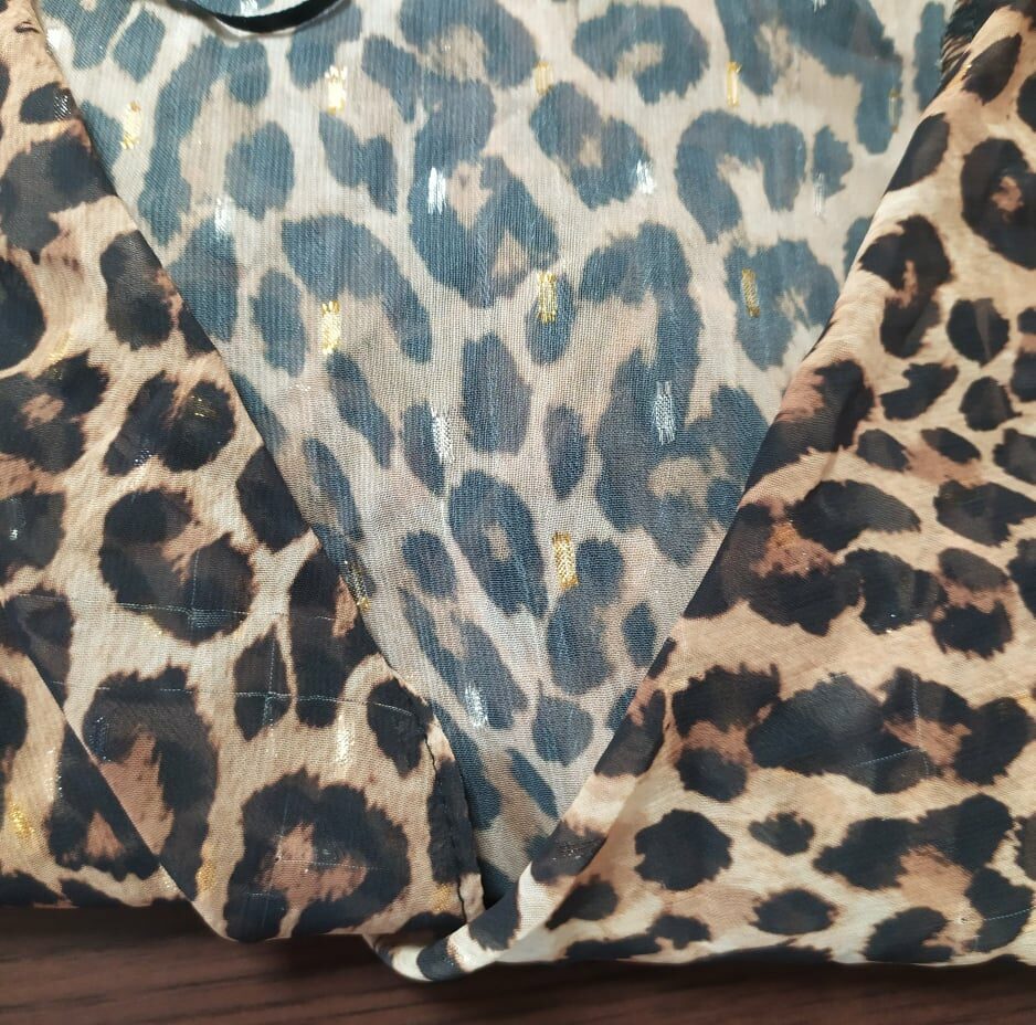 Brązowa kopertowa bluzka w panterkę defekt 38