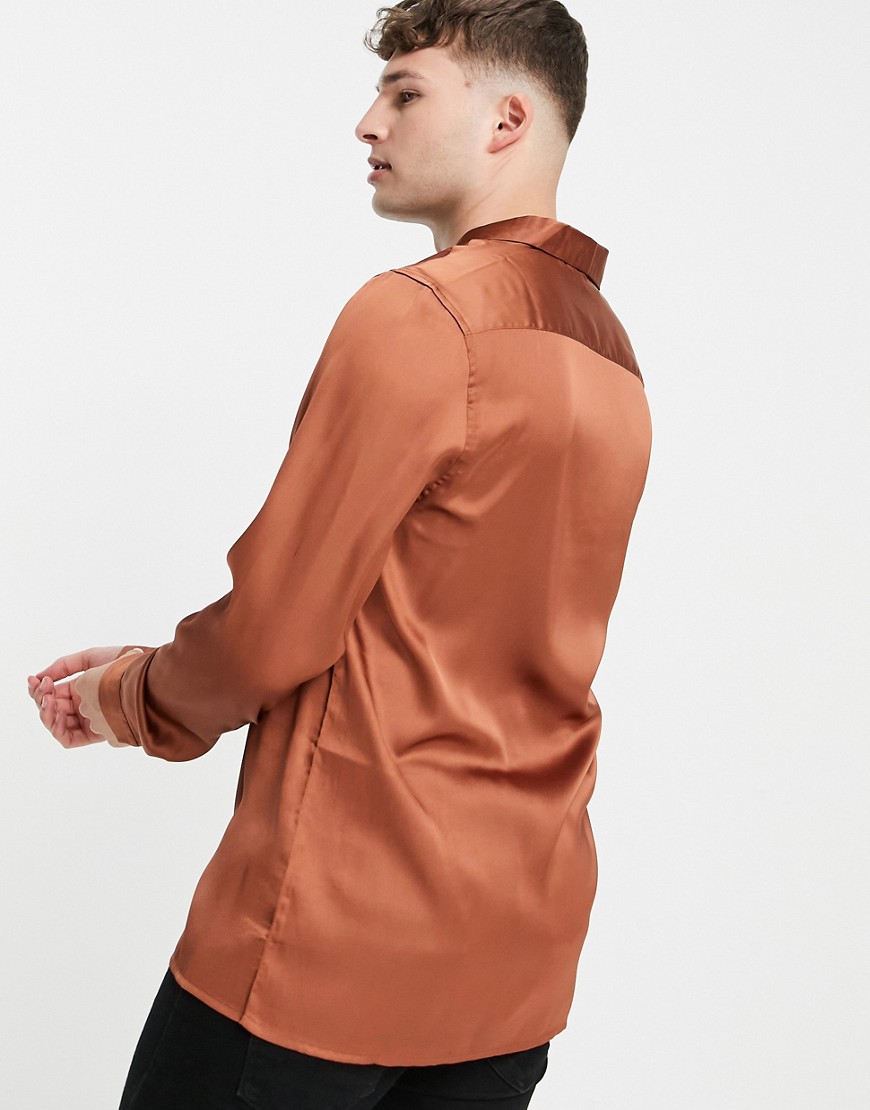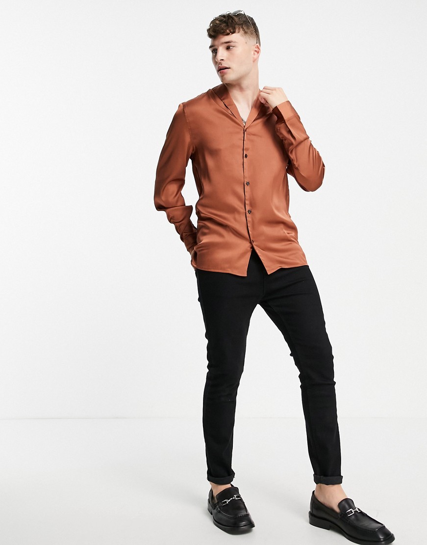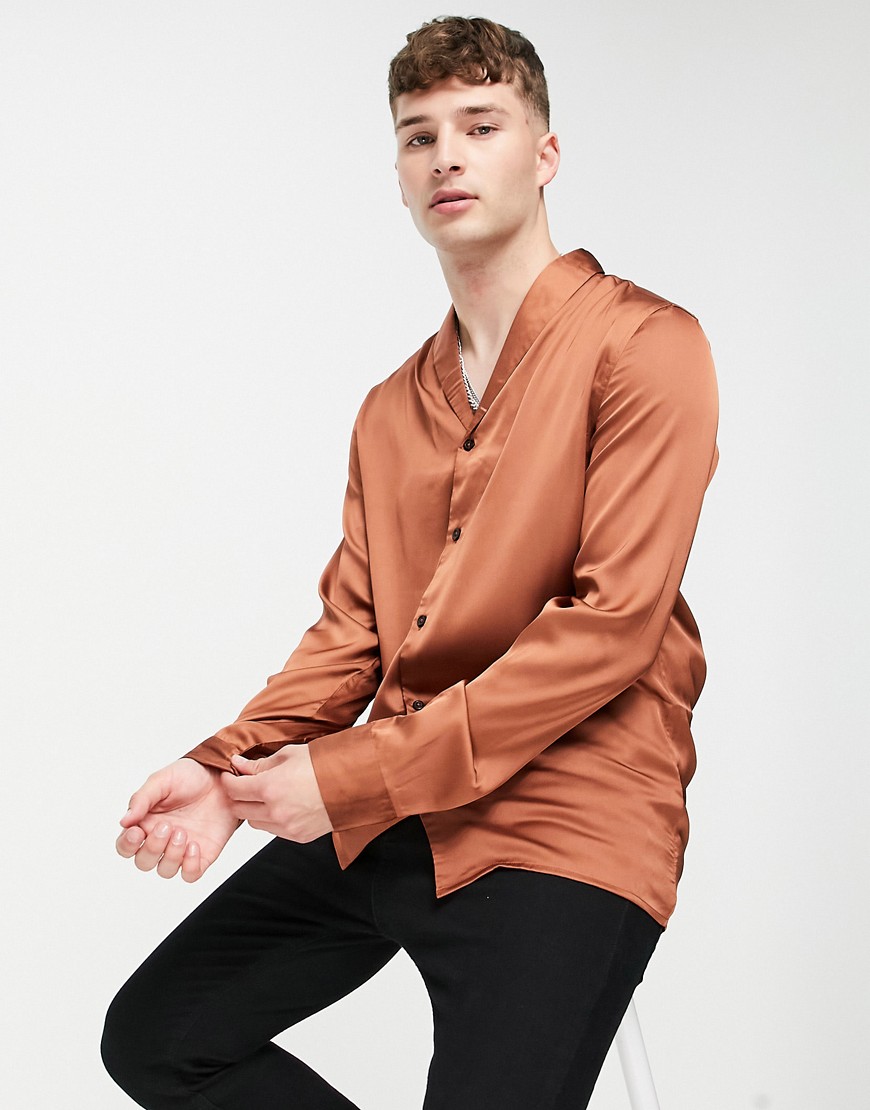 Brażowa satynowa koszula o regularnym kroju, z kołnierzem defekt S