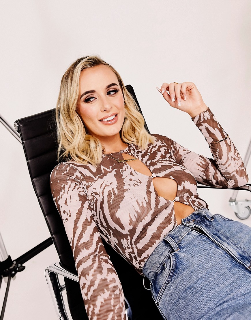 Brązowe body z siateczki z wycięciem zwierzęcy wzór 46