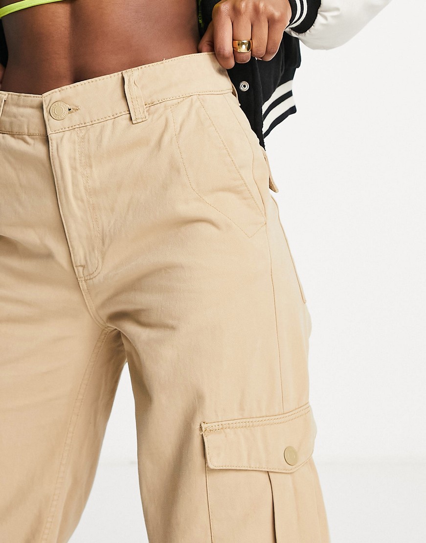 Brązowe spodnie bojówki z podwyższonym stanem wide leg 36