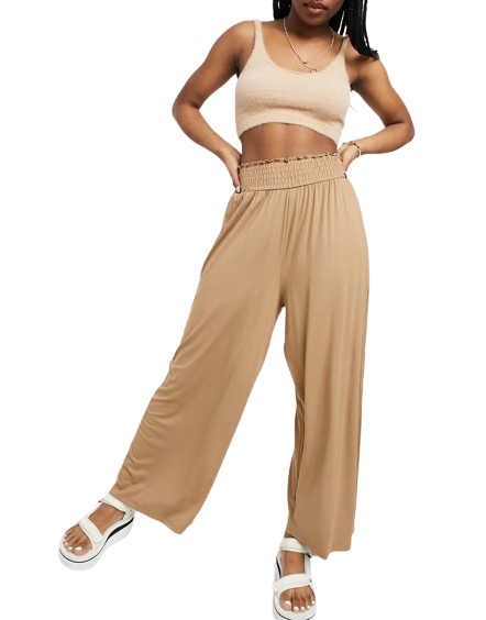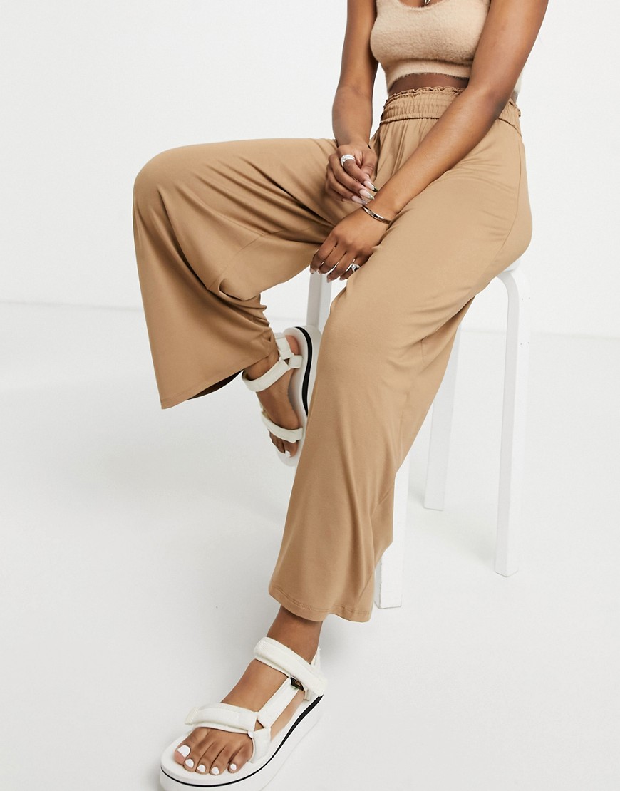 Brązowe spodnie kuloty z marszczoną talią 44