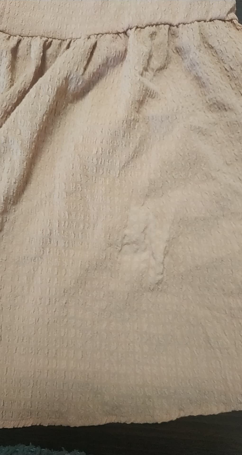 - defekt odbarwienie i rozciągnięcie materiału na prawym pośladku