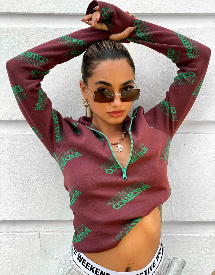 - Nadruk z logo marki powtarzający się na całej powierzchni