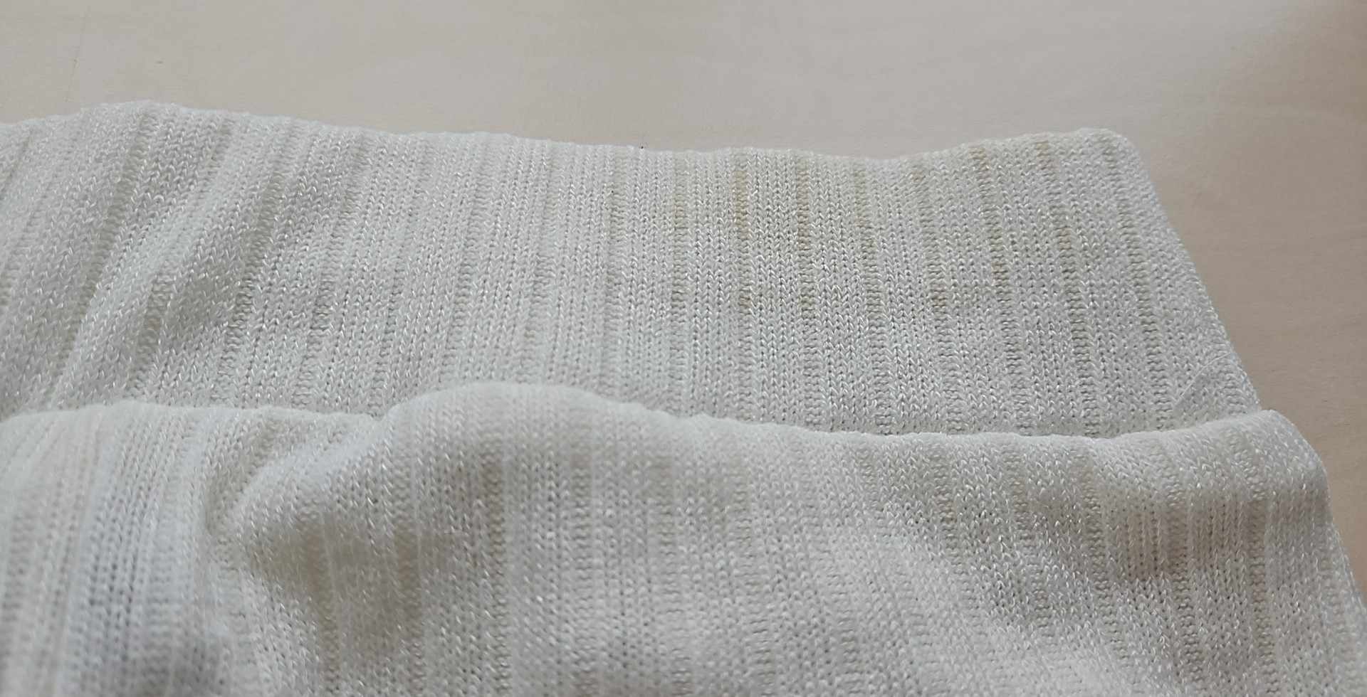 - Defekt wada fabryczna tkaniny na pasku, lekkie zażółcenie