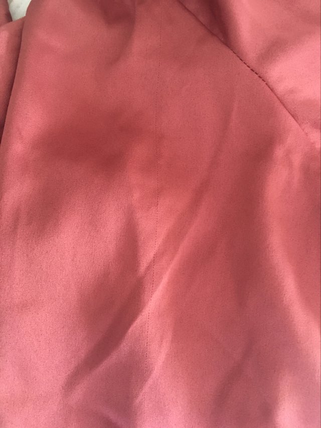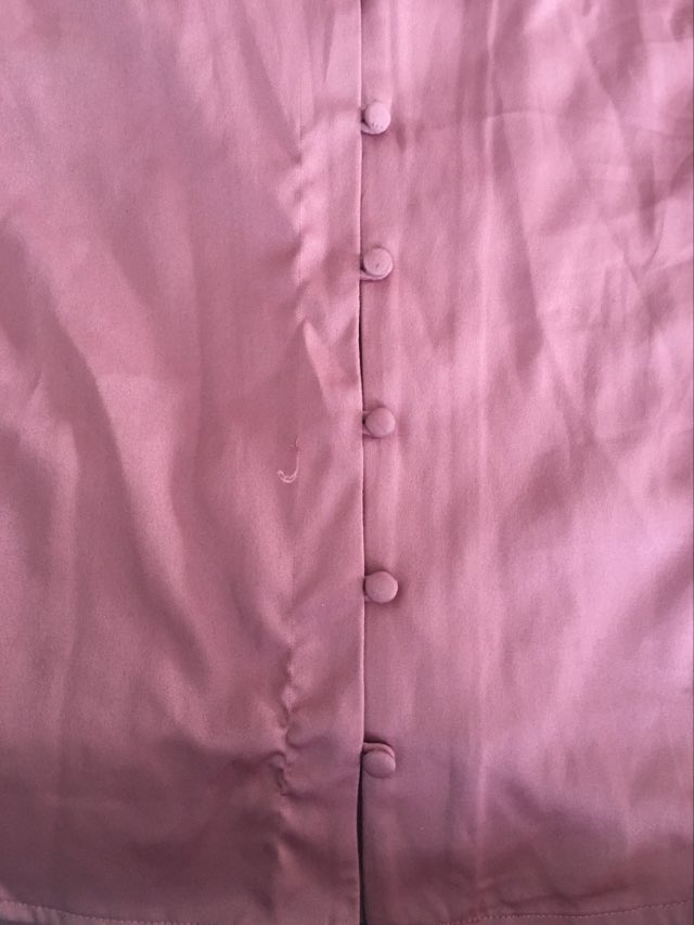 • Defekt: zaciagnięcie materiału na lini guzików oraz na prawym ramieniu – zdjęcia w galerii przedmiotu.