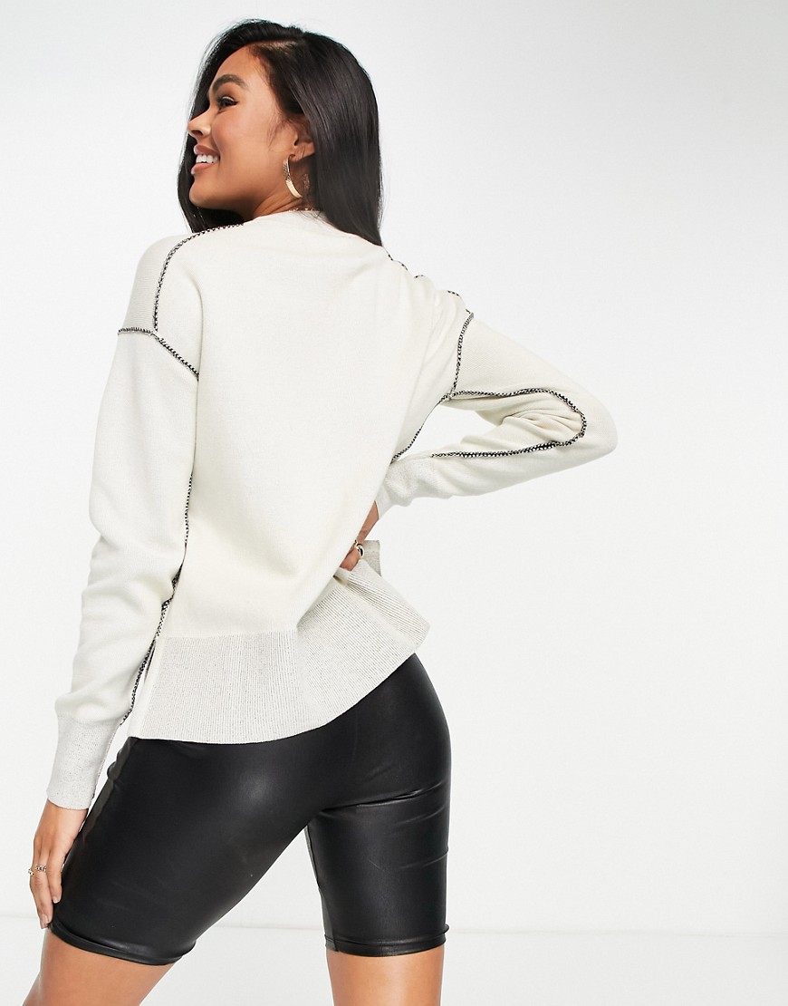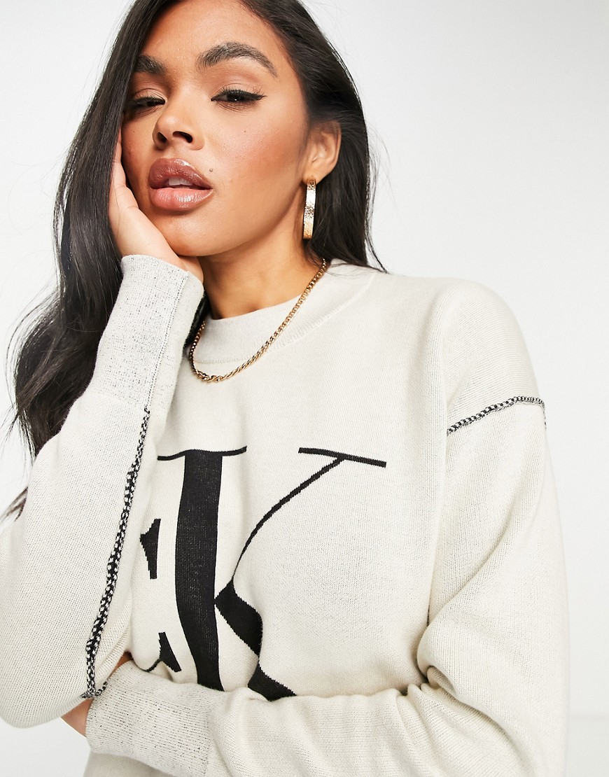 Calvin Klein Jeans beżowy damski dzianinowy sweter z logo CK M