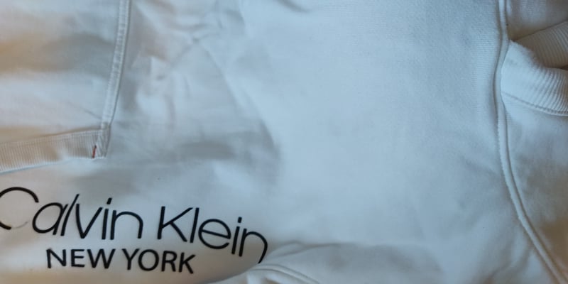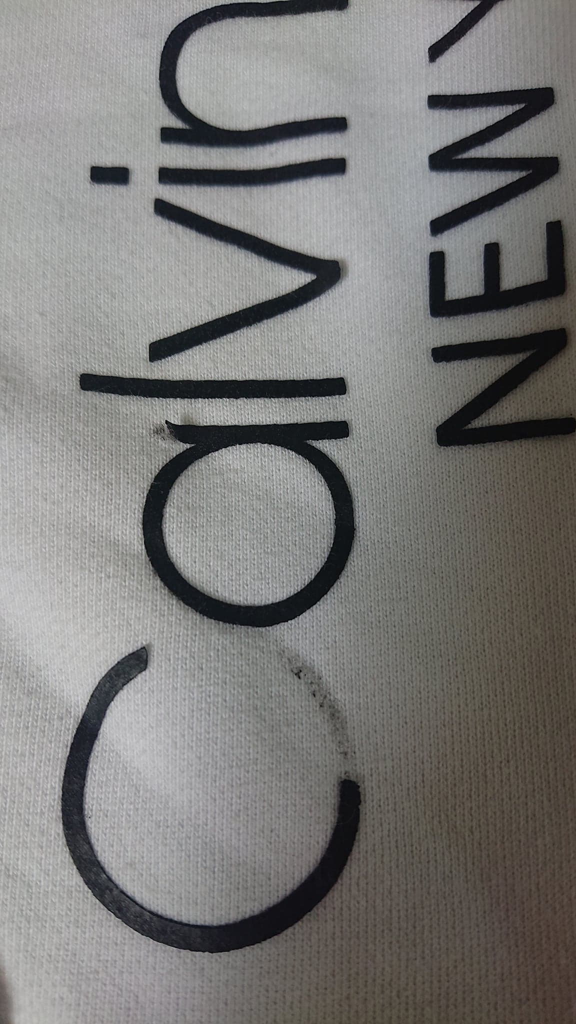 • DEFEKT: odklejają się literki, brak połowy litery C (zdjęcie), plama przy dekolcie z przodu (zdjęcie)