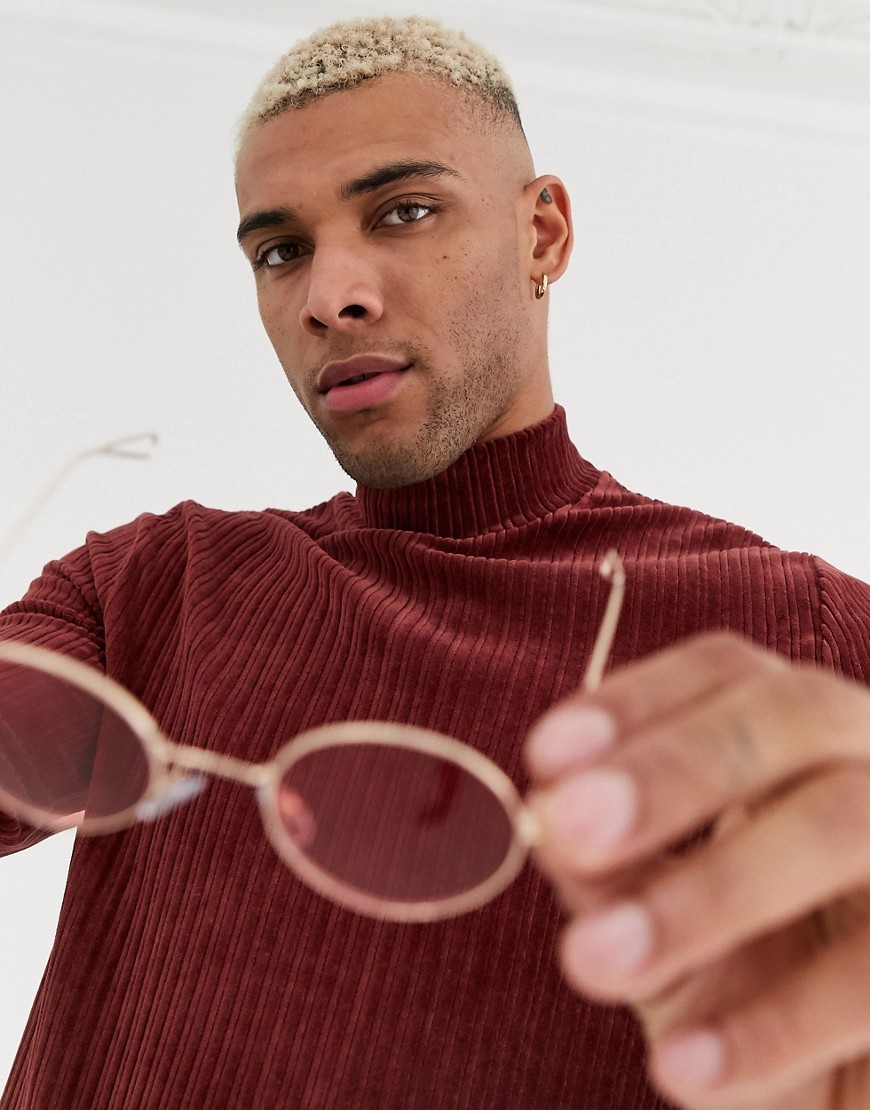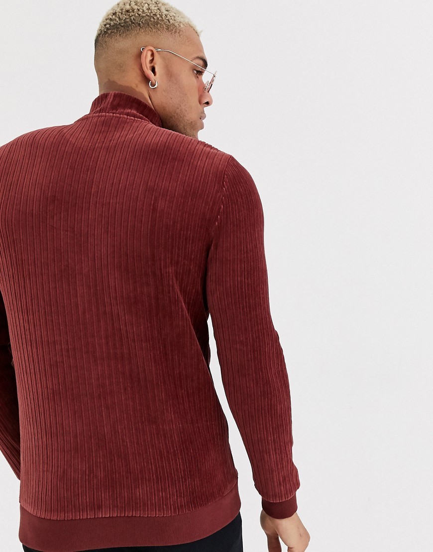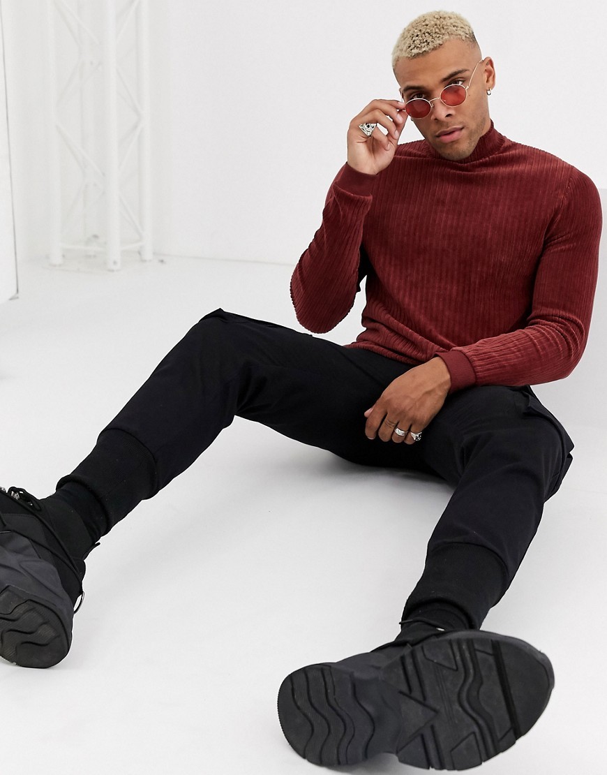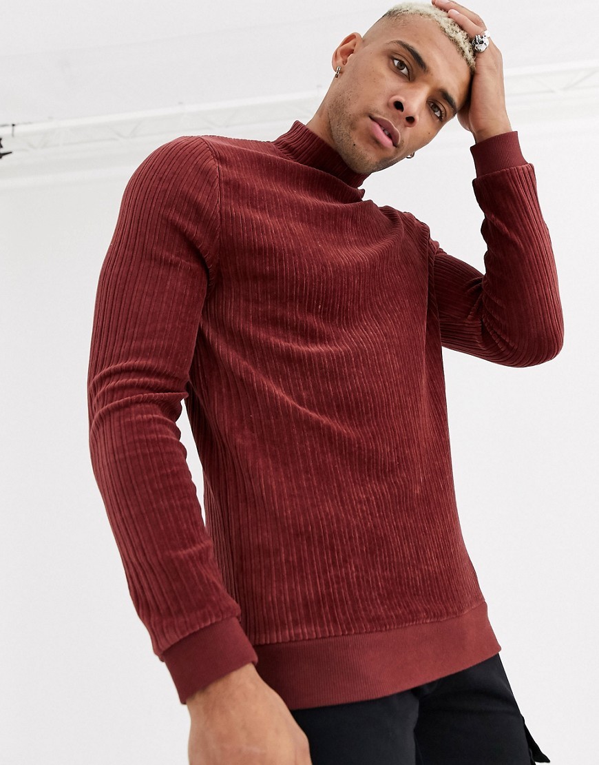 Ceglasty Sweter męski z wyższym kołnierzem S