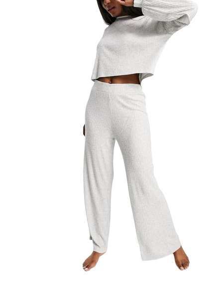 Chelsea Peers szare prążkowane spodnie z szerokimi nogawkami z ekologicznego dżerseju XS