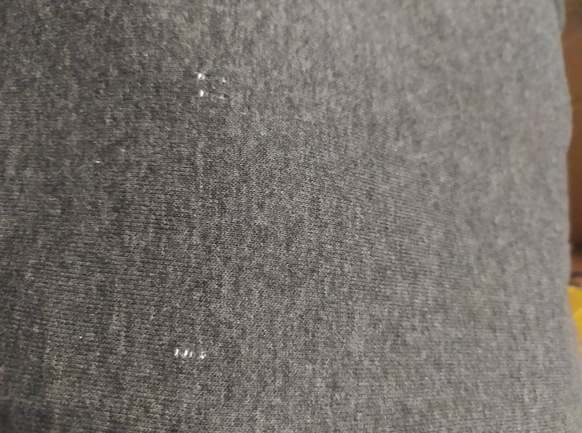 - Defekt: skaza fabryczna pod kolanem na lewej nogawce (zdjęcia)