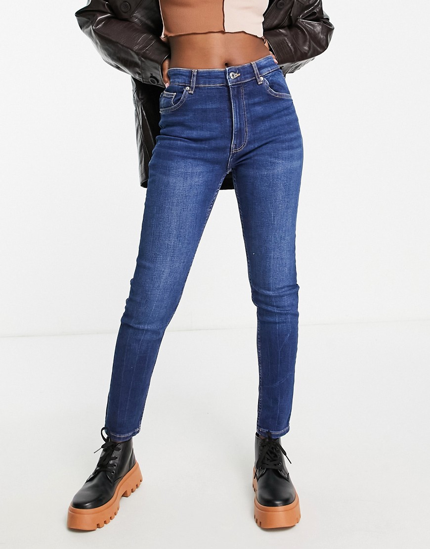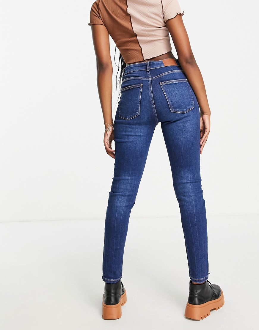 Ciemnoniebieskie obcisłe jeansy z wysokim stanem 38