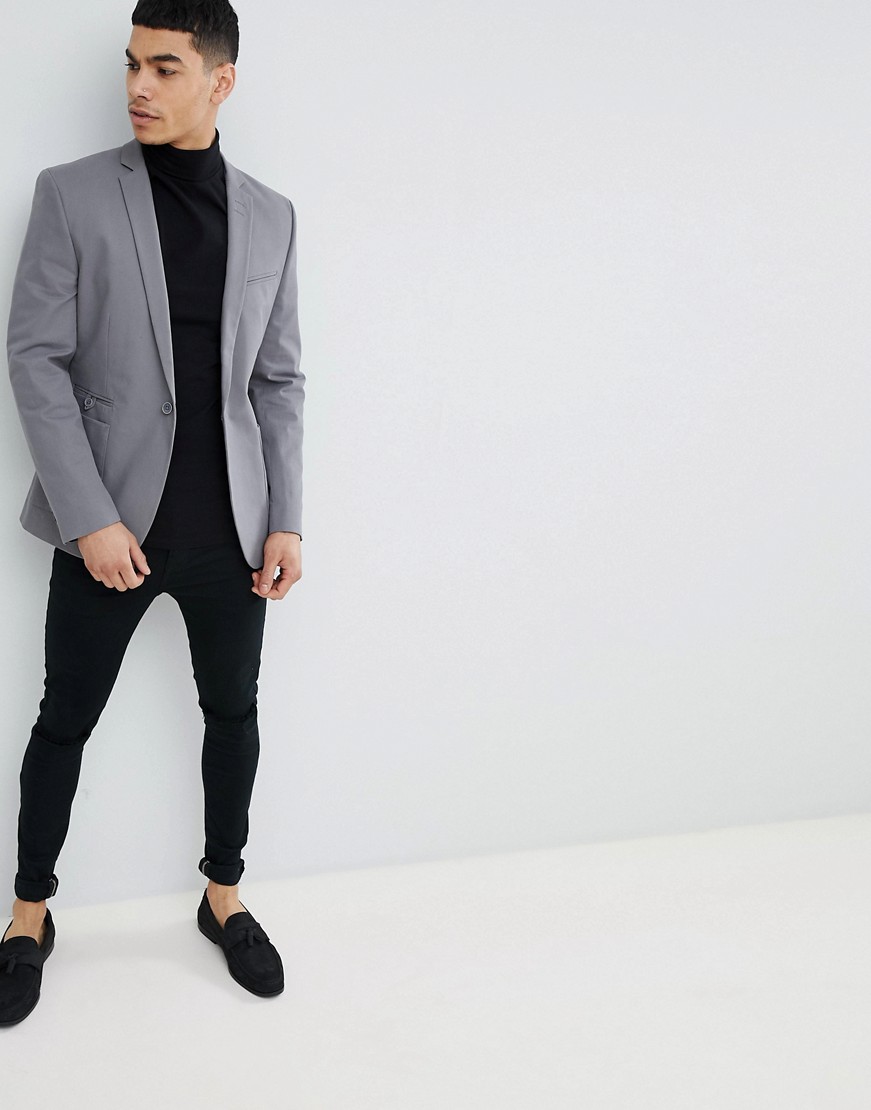 Ciemnoszara męska marynarka dopasowany krój skinny 52
