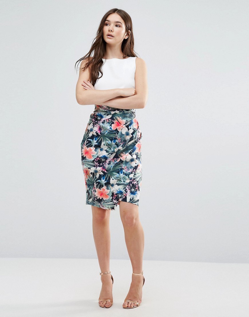 Biała sukienka ołówkowa w kwiaty marki Closet