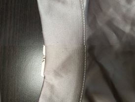 - defekt delikatnie zaciągnięte nitki na golfie i na dole spódnicy