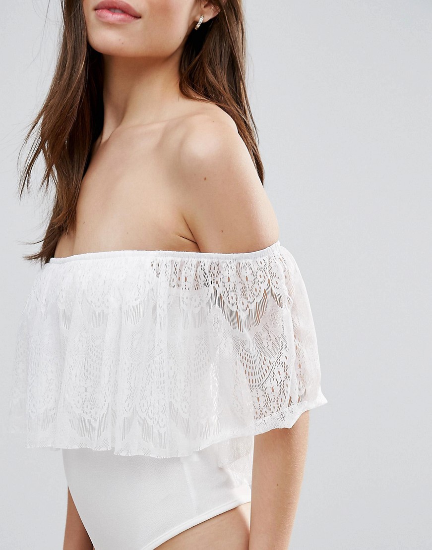 Club L Białe Kremowe Body koronkowe