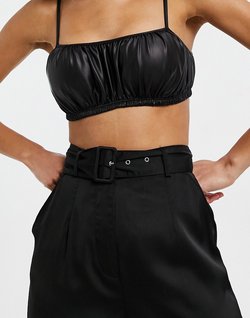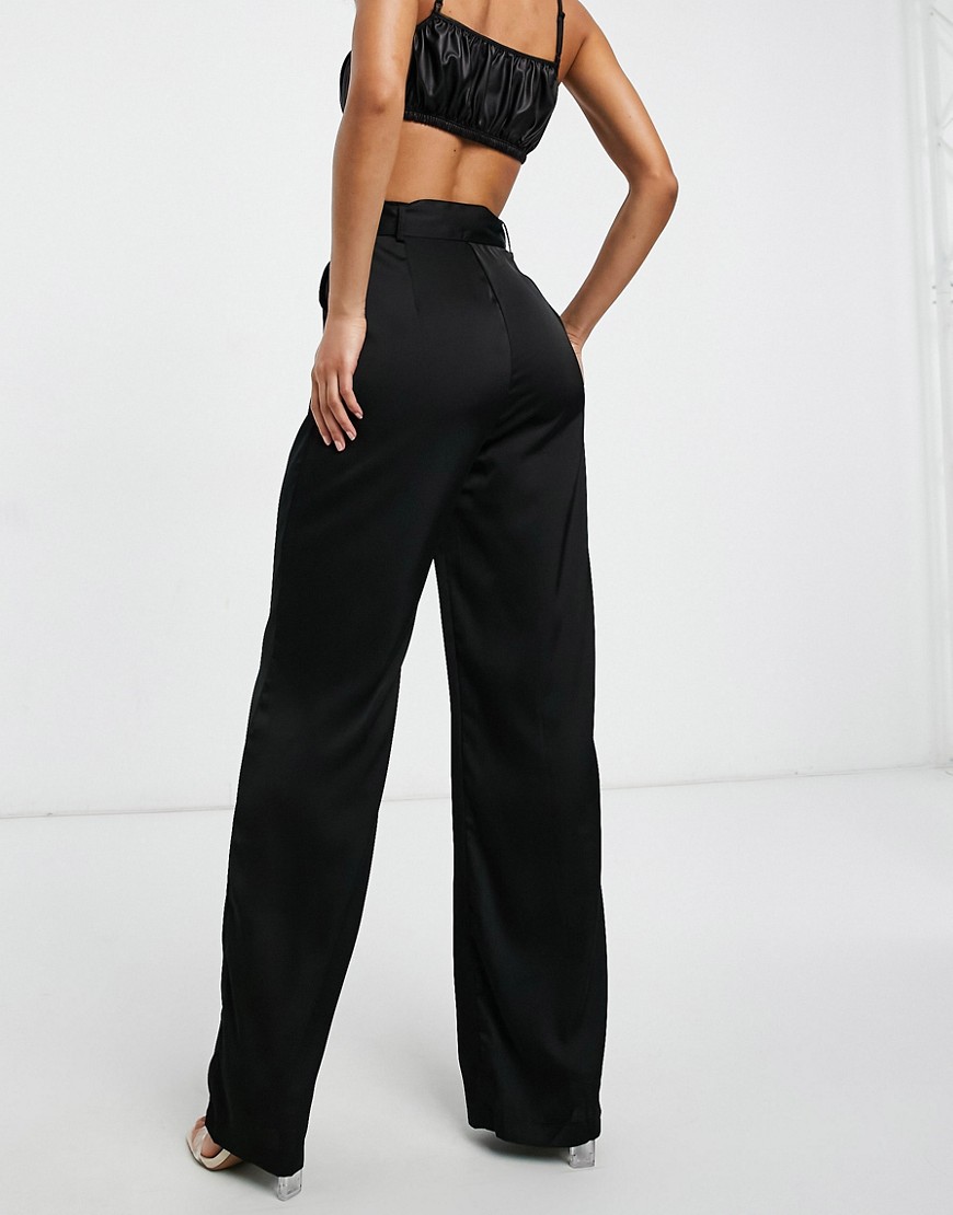 Club L czarne satynowe spodnie damskie z szerokimi nogawkami 38