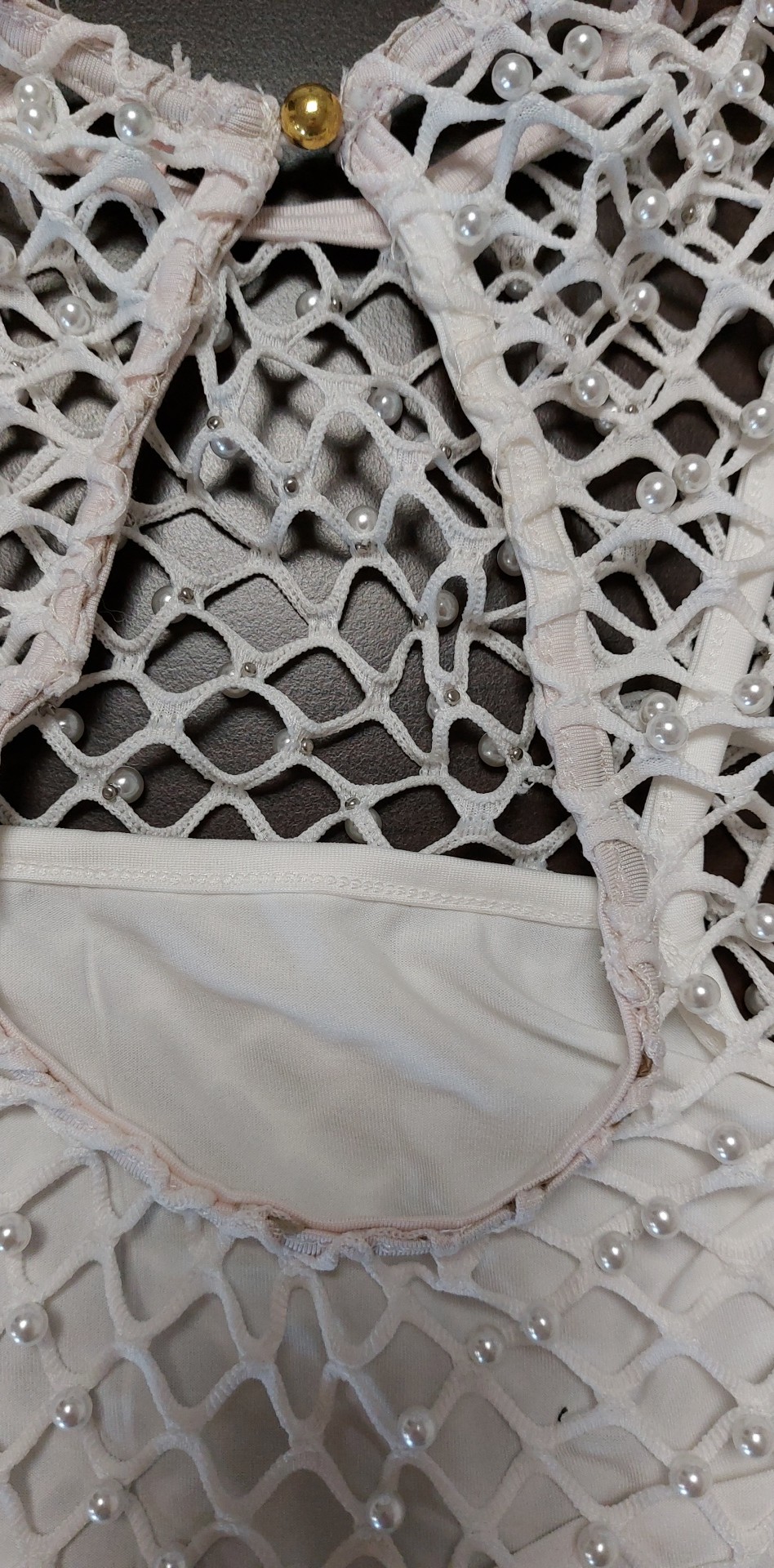 - defekt : zabarwione na różowo szwy, zdjęcie w galerii produktu