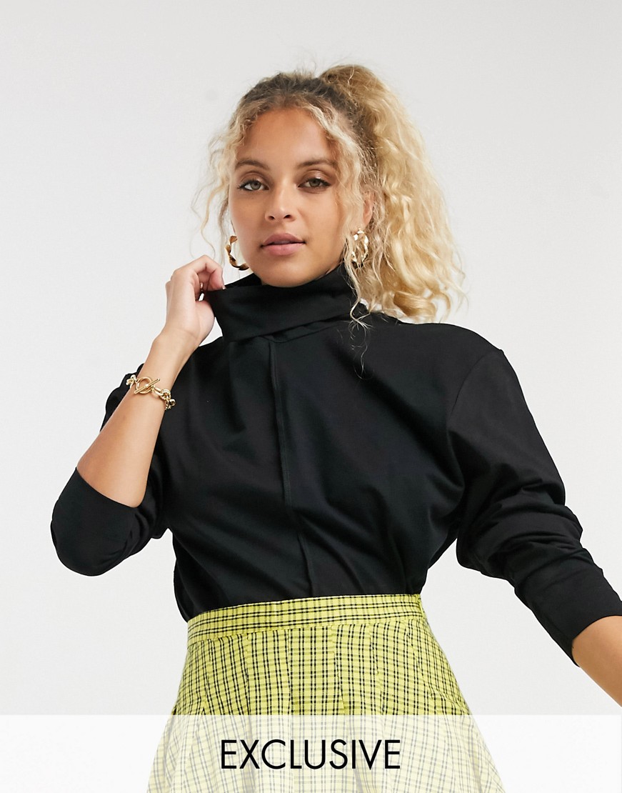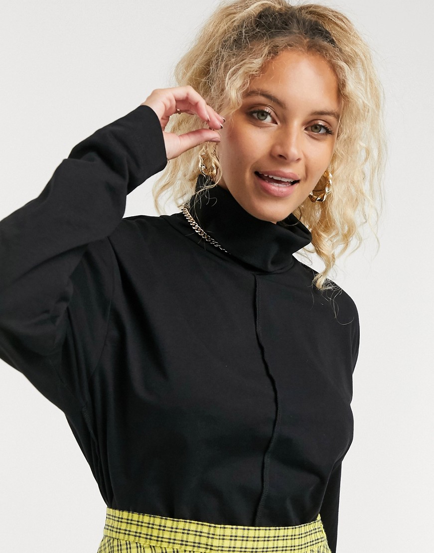 – Czarny top oversize z wysokim dekoltem i widocznymi szwami 40