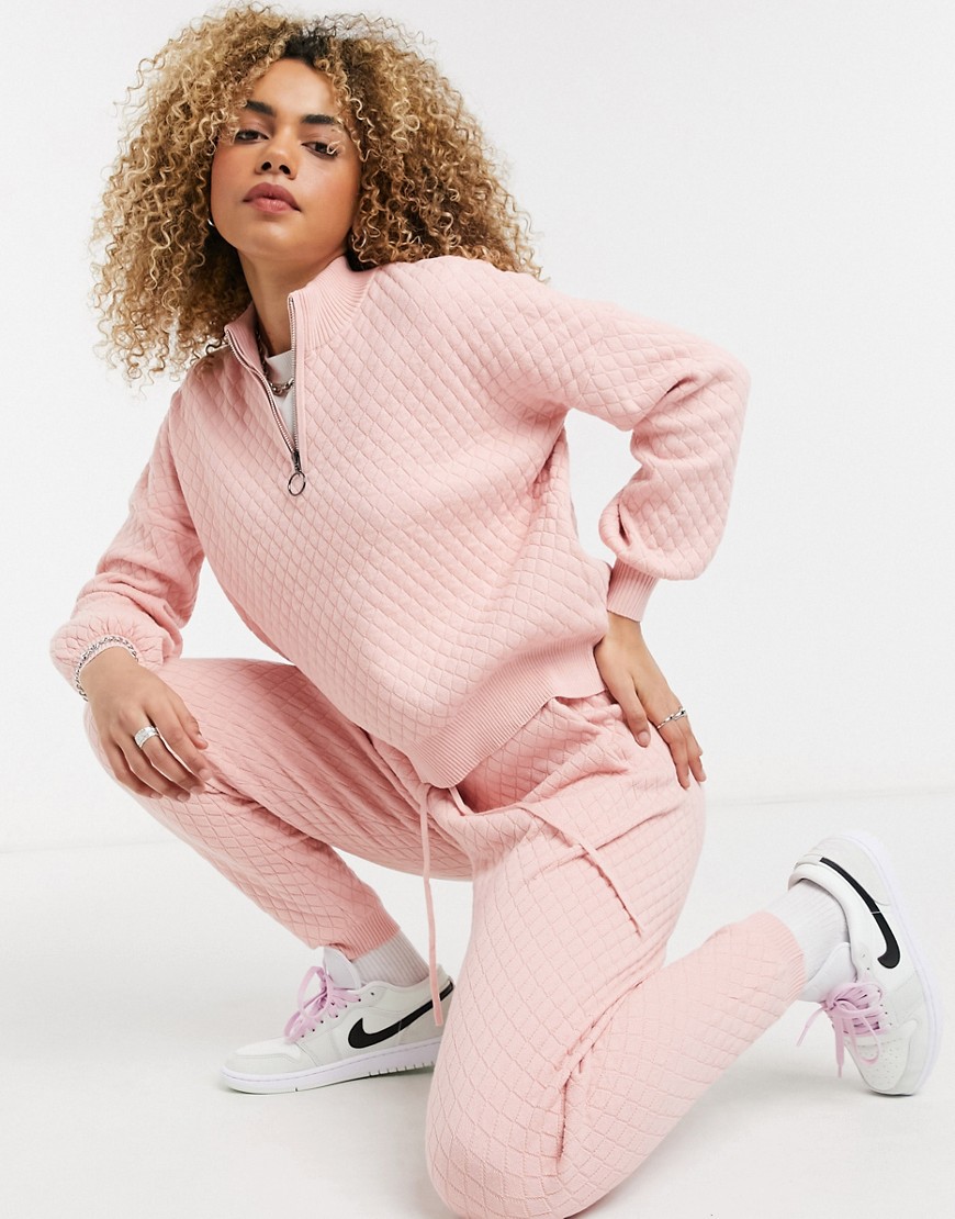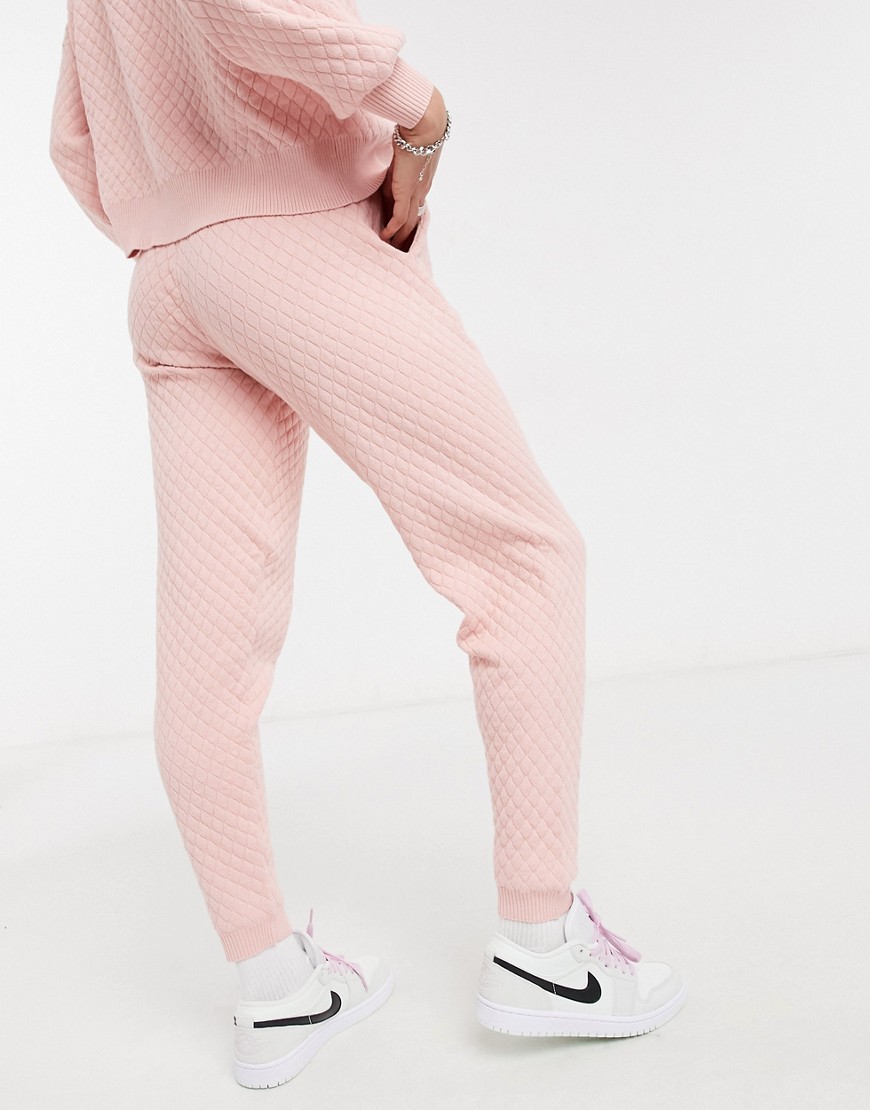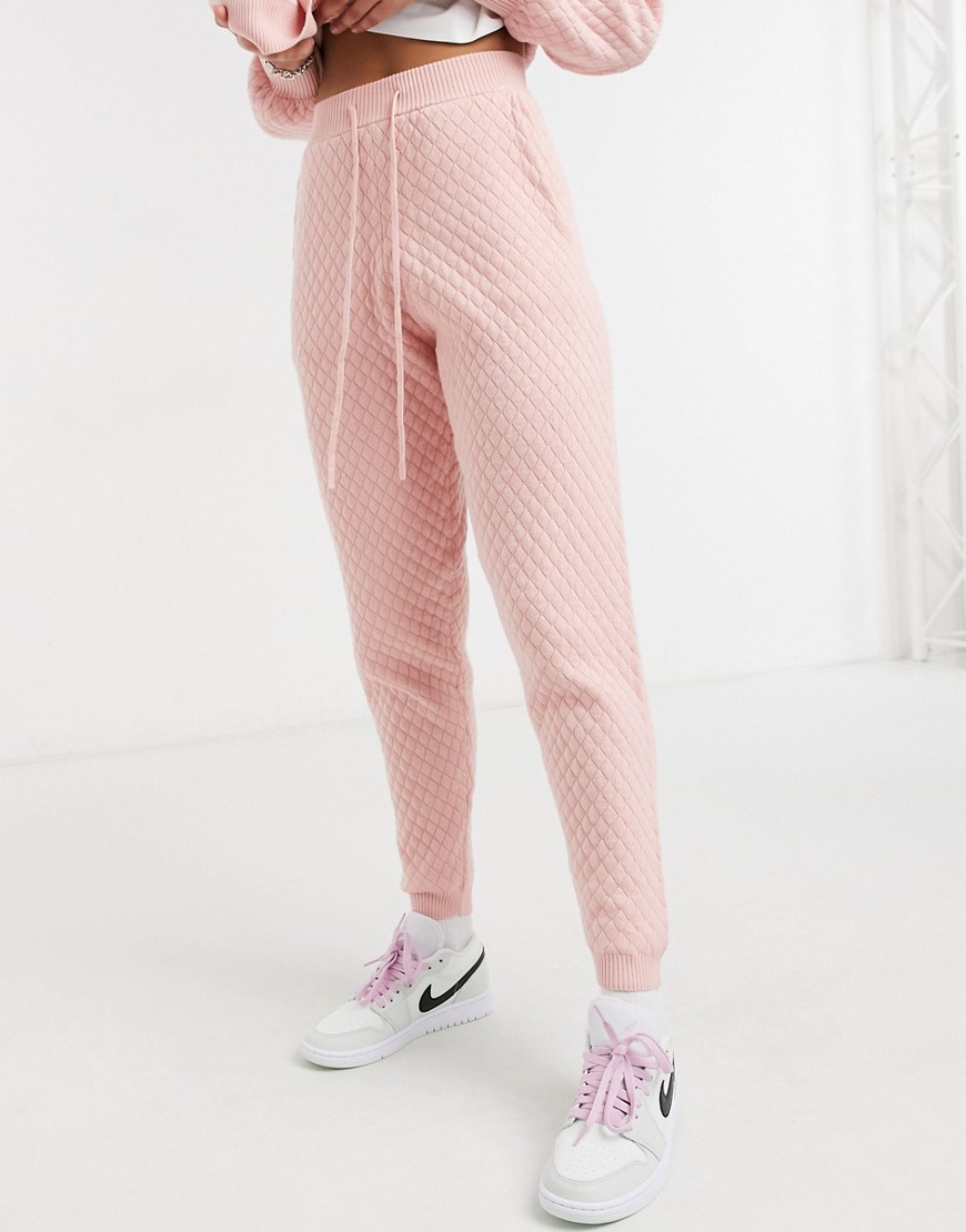 – Jasnoróżowe pikowane dzianinowe joggersy 46