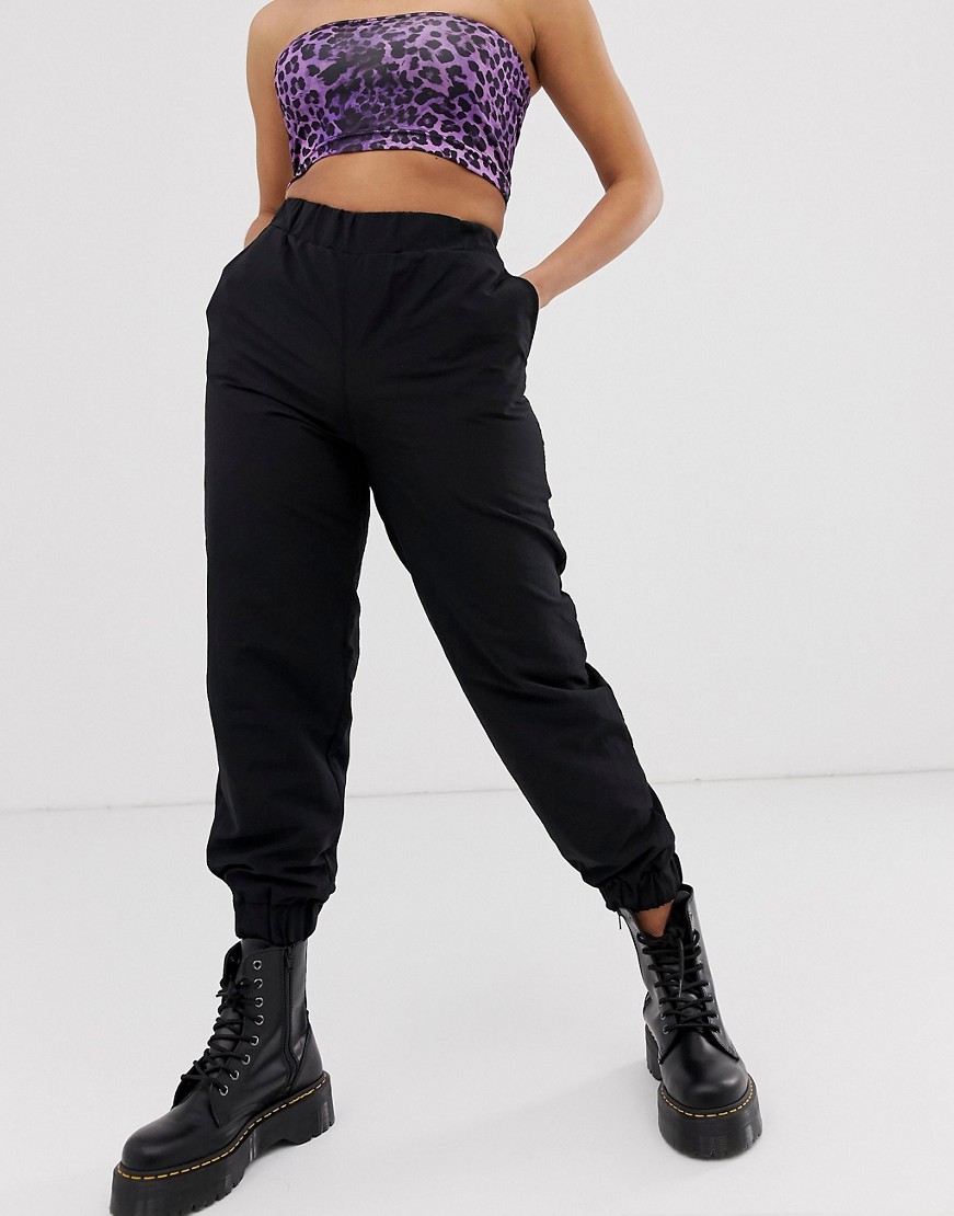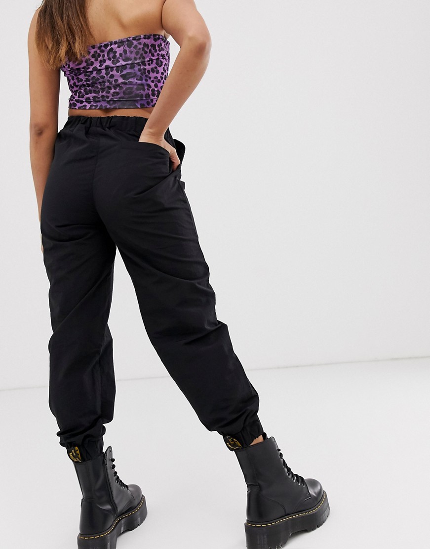 Petite czarne nylonowe spodnie, 38