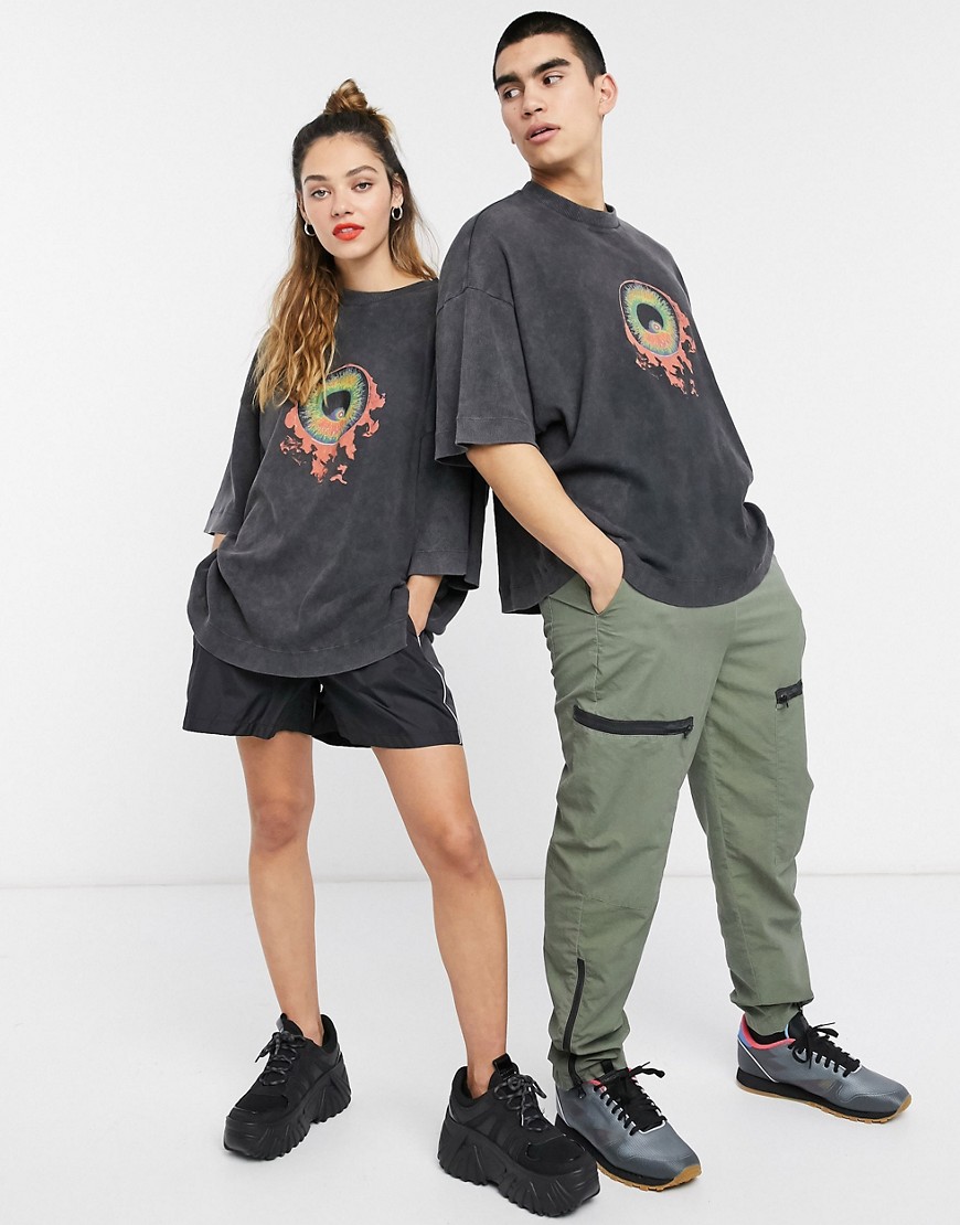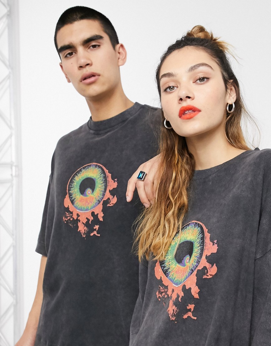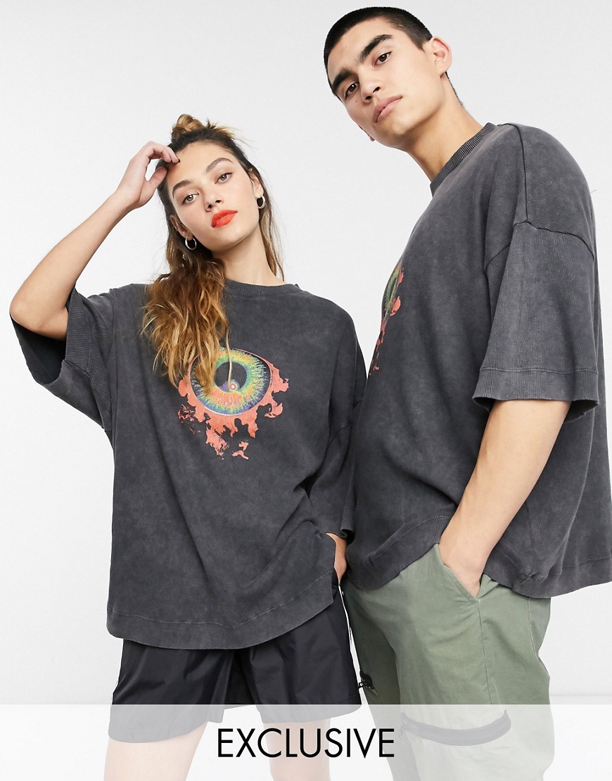 Unisex T-shirt z teksturowanej tkaniny z nadrukiem i efektem sprania 2XL