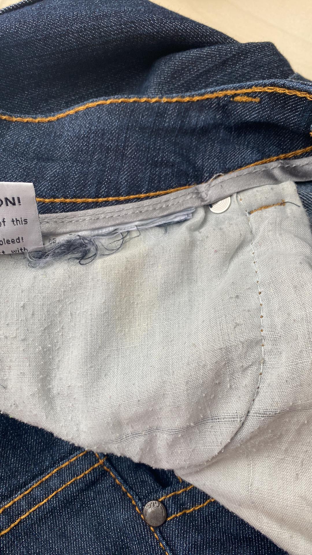 - używane: zabrudzenie oraz zmechacony materiał kieszonka wewnątrz