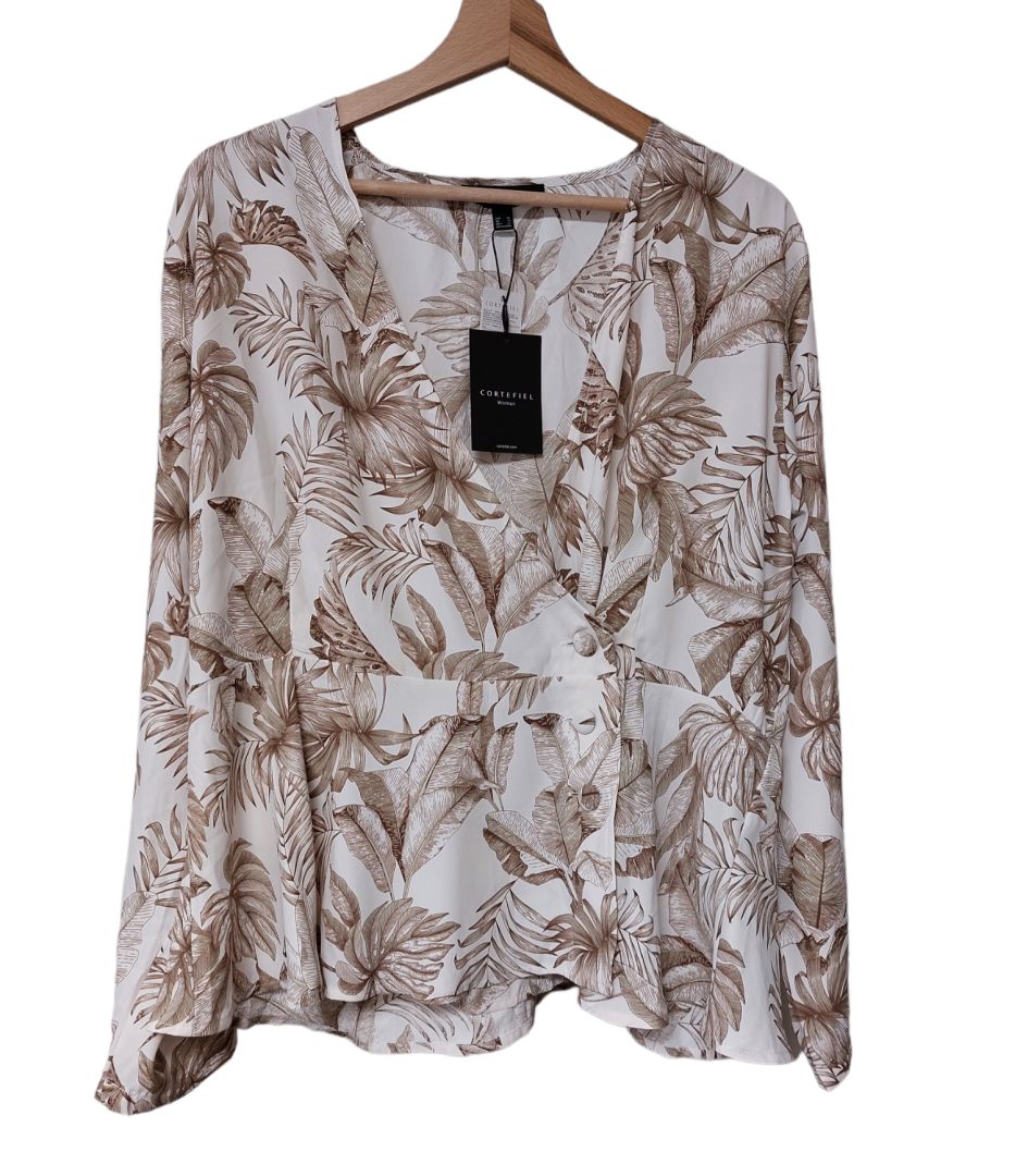 Cortefiel kopertowa bluzka w liście na guziki defekt XL