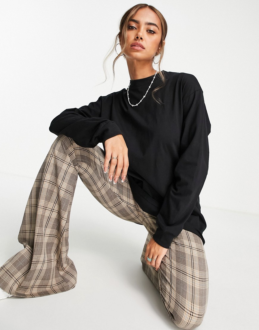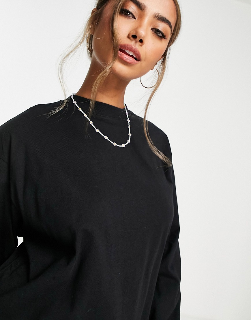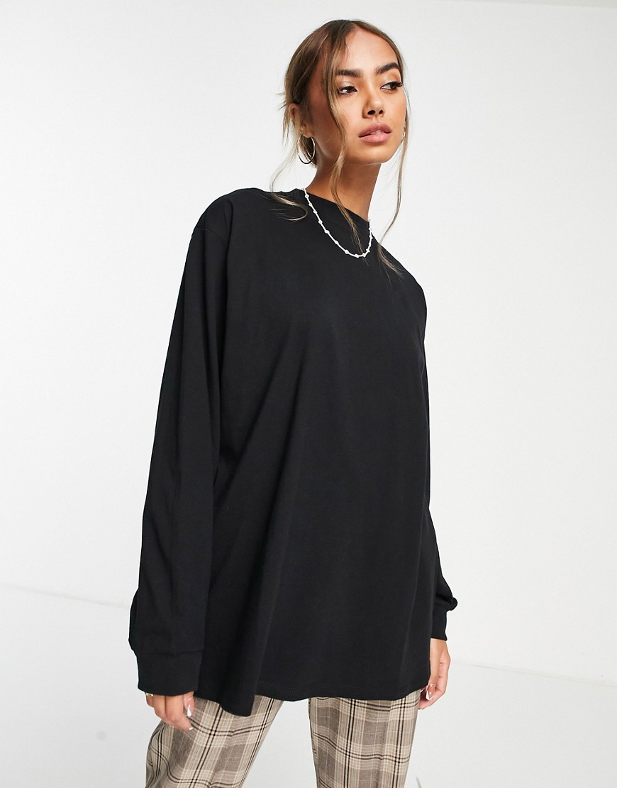 Cotton:On czarny t-shirt oversize z długimi rękawami defekt M