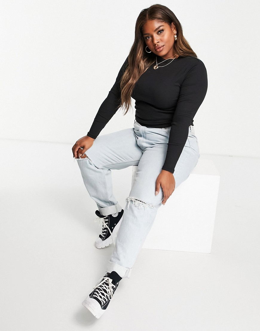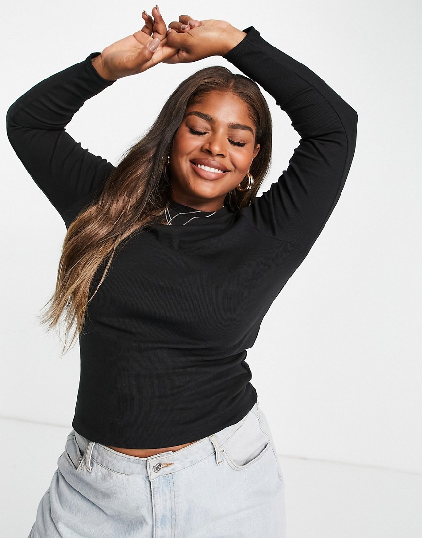 Cotton:On czarny T-shirt z długimi rękawami plus size 52