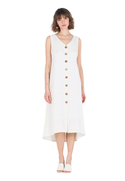 Cream biała prosta maxi sukienka na ramiączkach zapinana na guziki 38