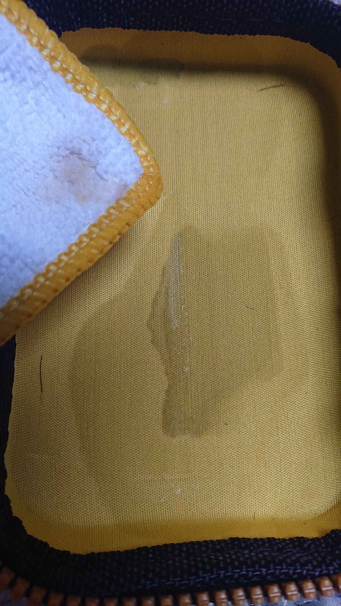 - DEFEKT: w pokrowcu i na ściereczce jest plama