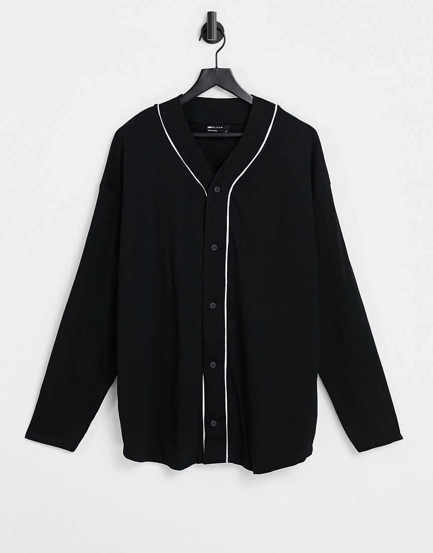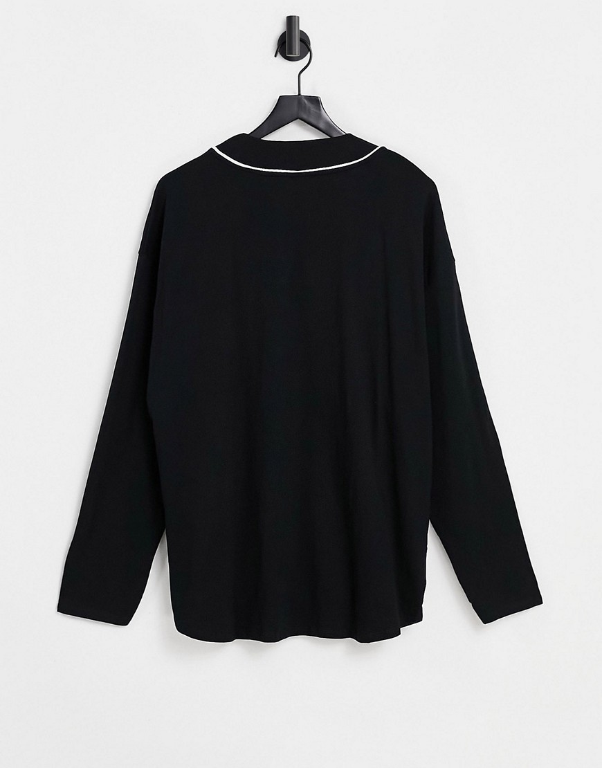 Czarna bluza bejsbolowa oversize z długimi rękawami z bawełny organicznej XXL
