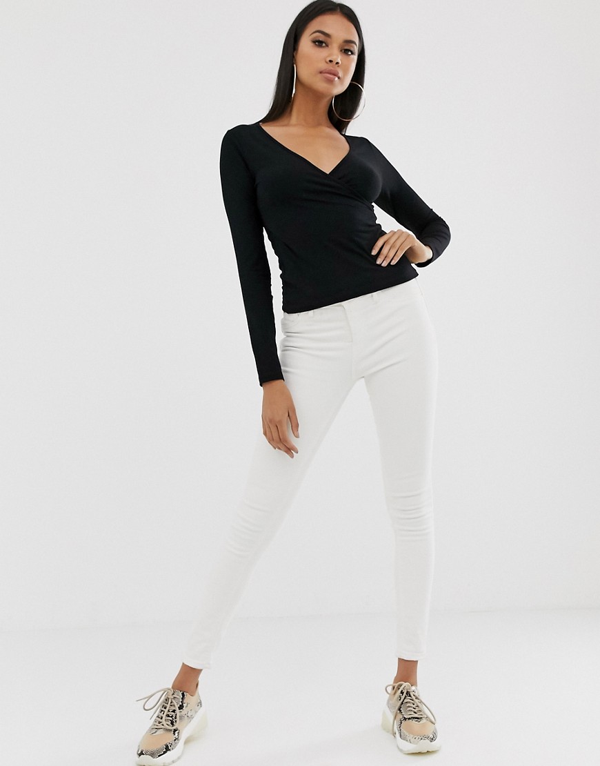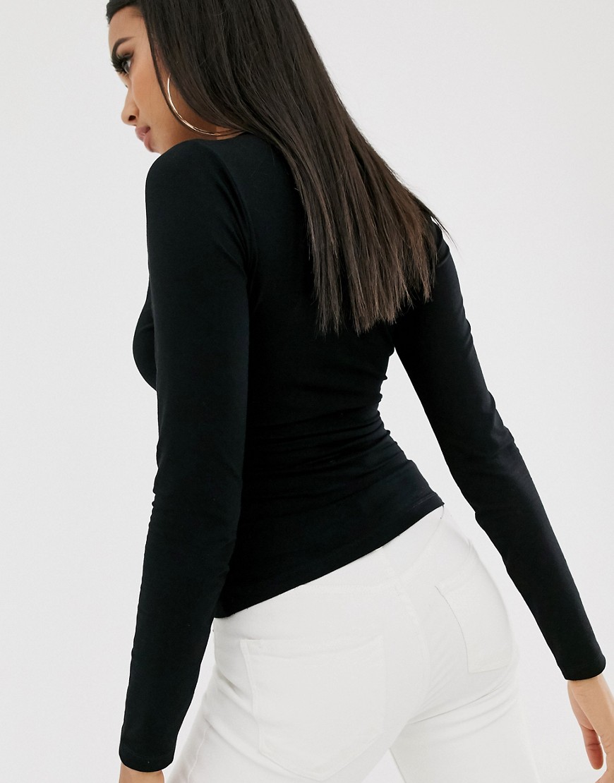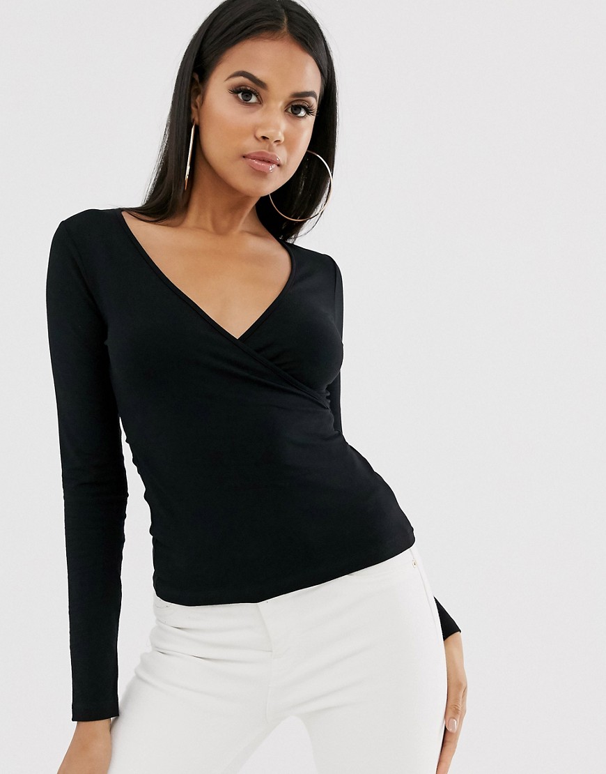 Czarna bluzka kopertowa z głębokim dekoltem 40
