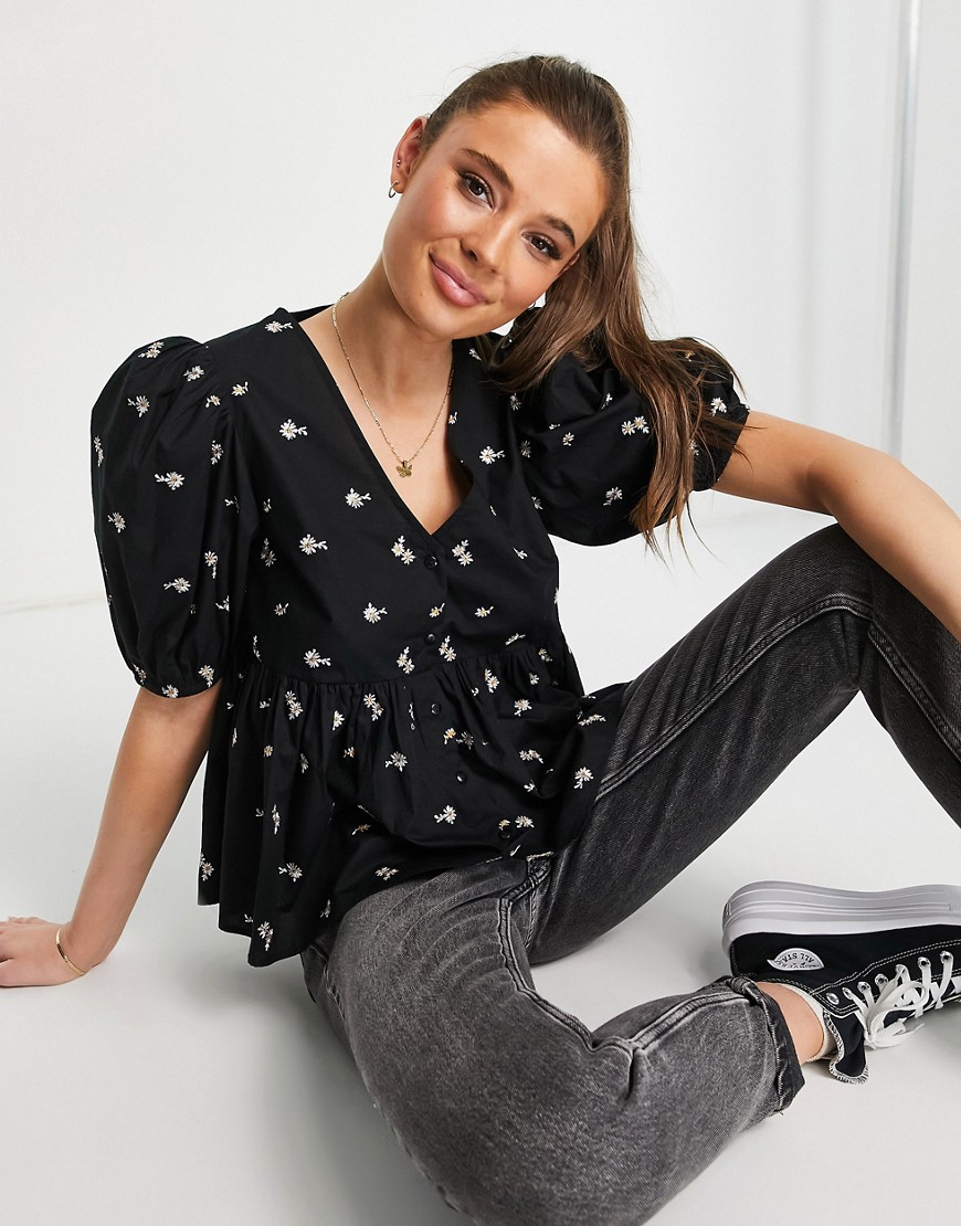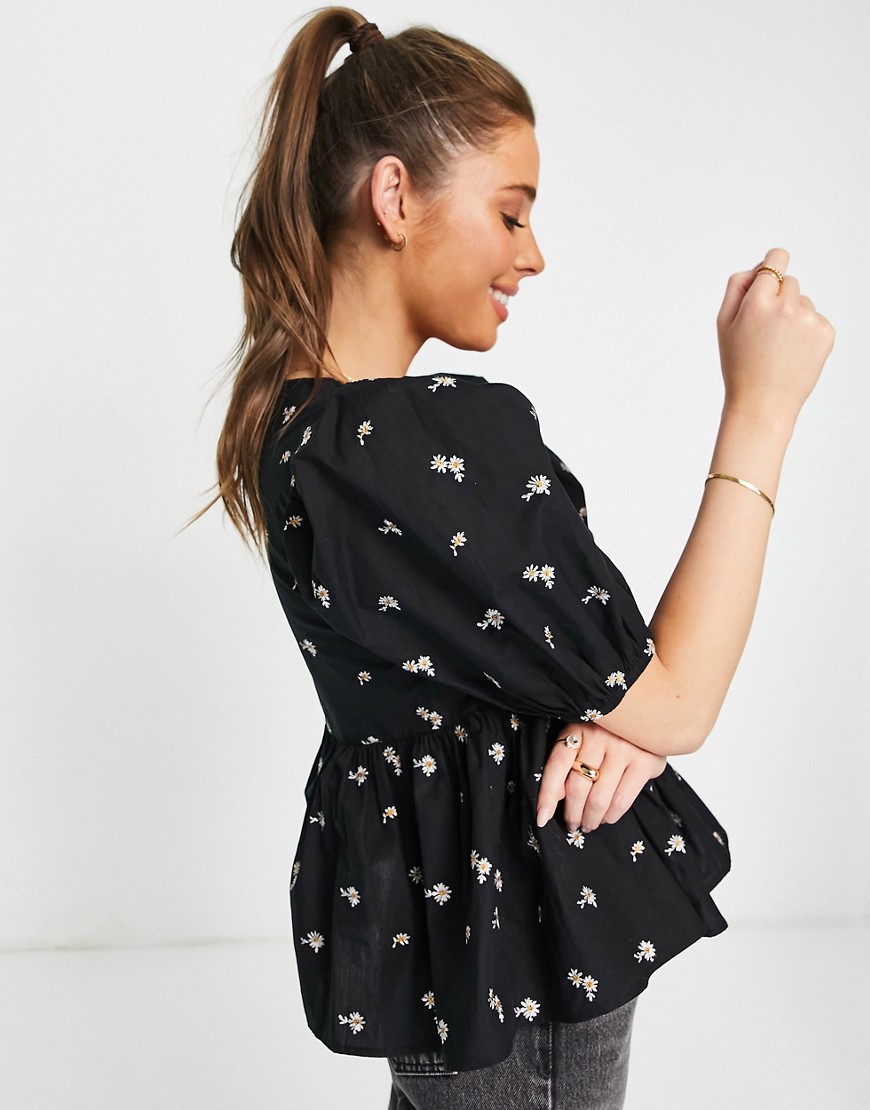 • Haftowany wzór w stokrotki