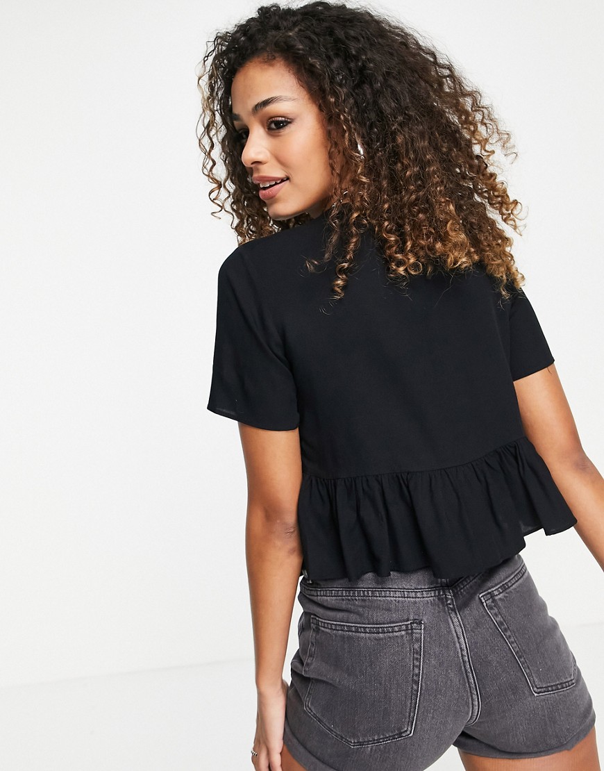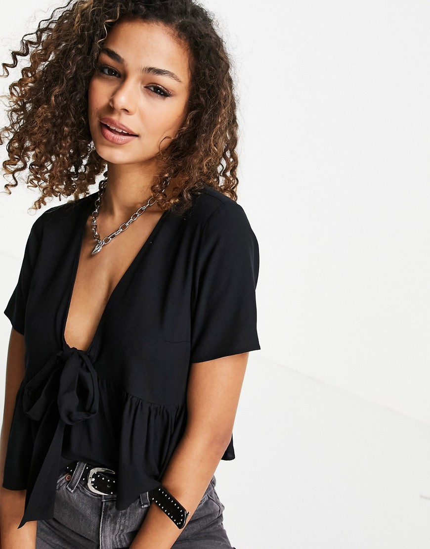 Czarna bluzka z krótkim rękawem i wiązaniem z przodu 44