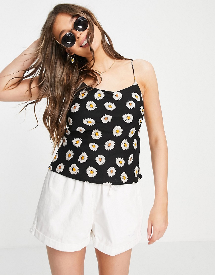 Czarna damska lniana bluzka letnia na ramiączkach stokrotki 44
