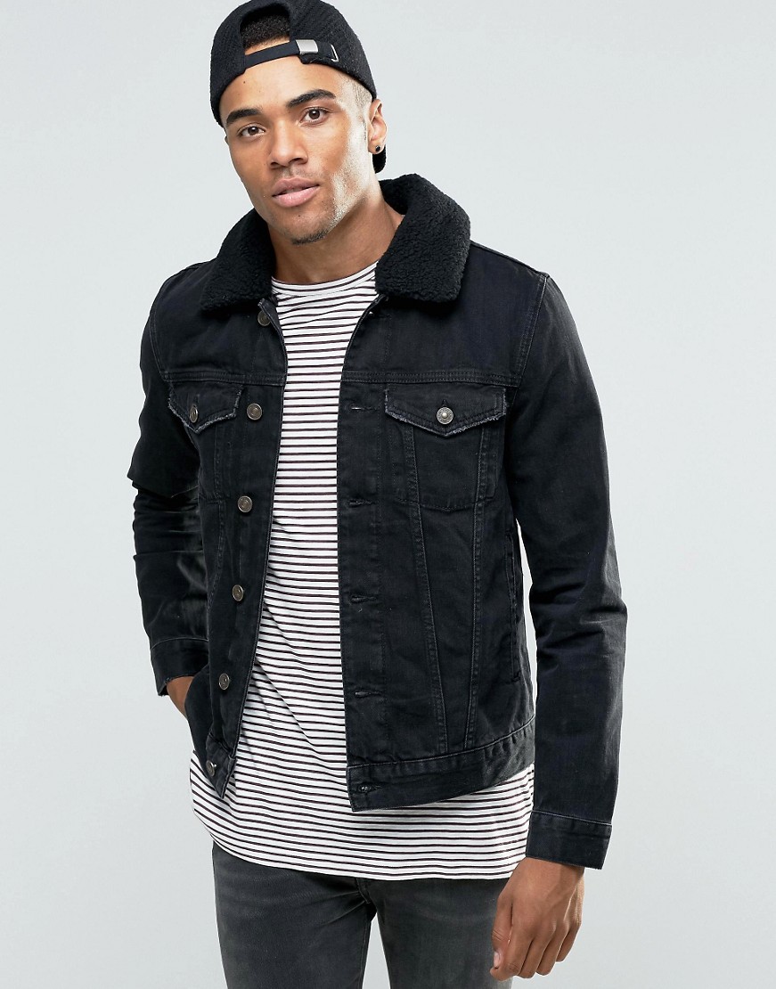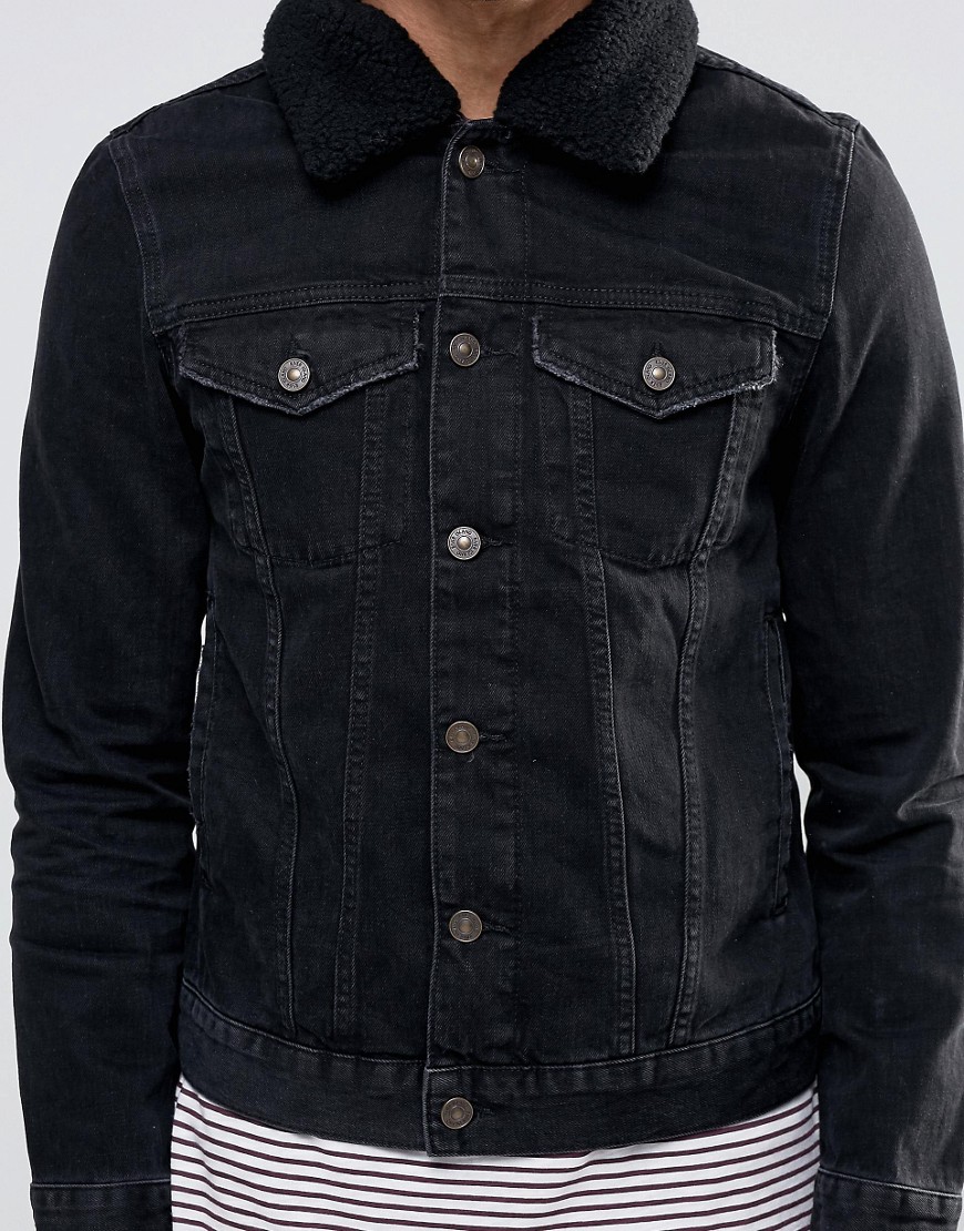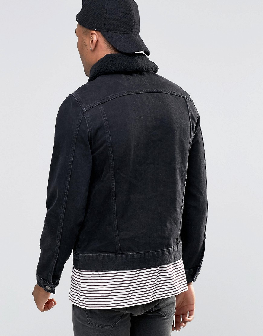 Czarna jeansowa kurtka z kołnierzem Borg L