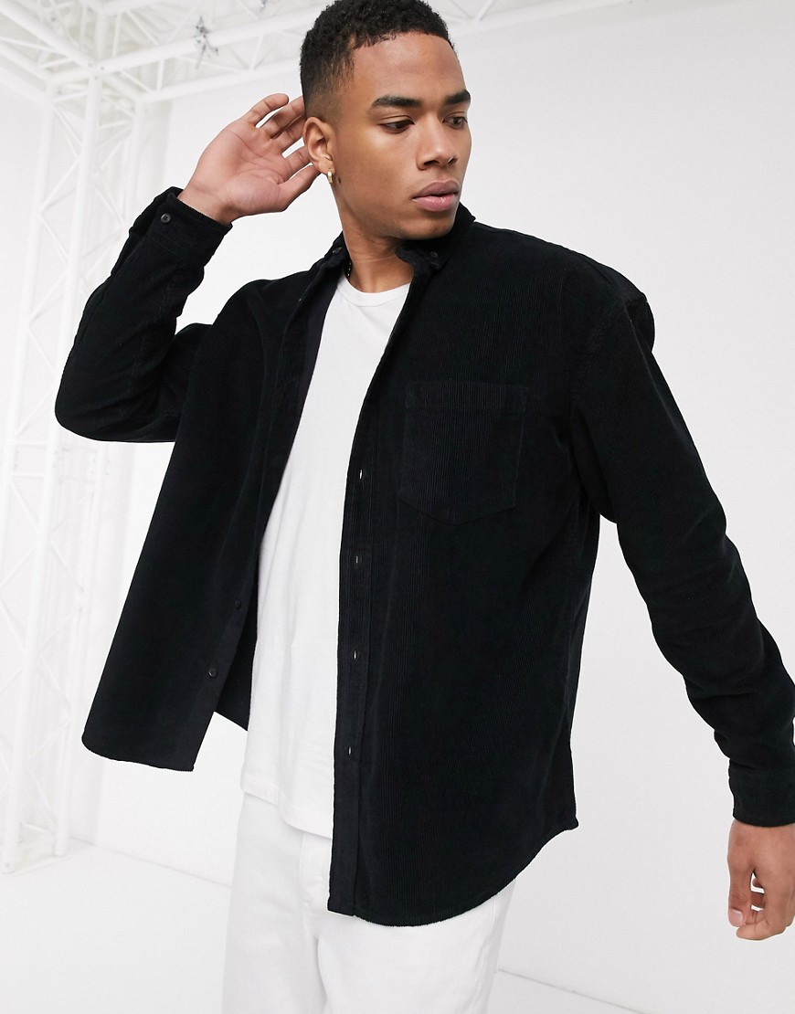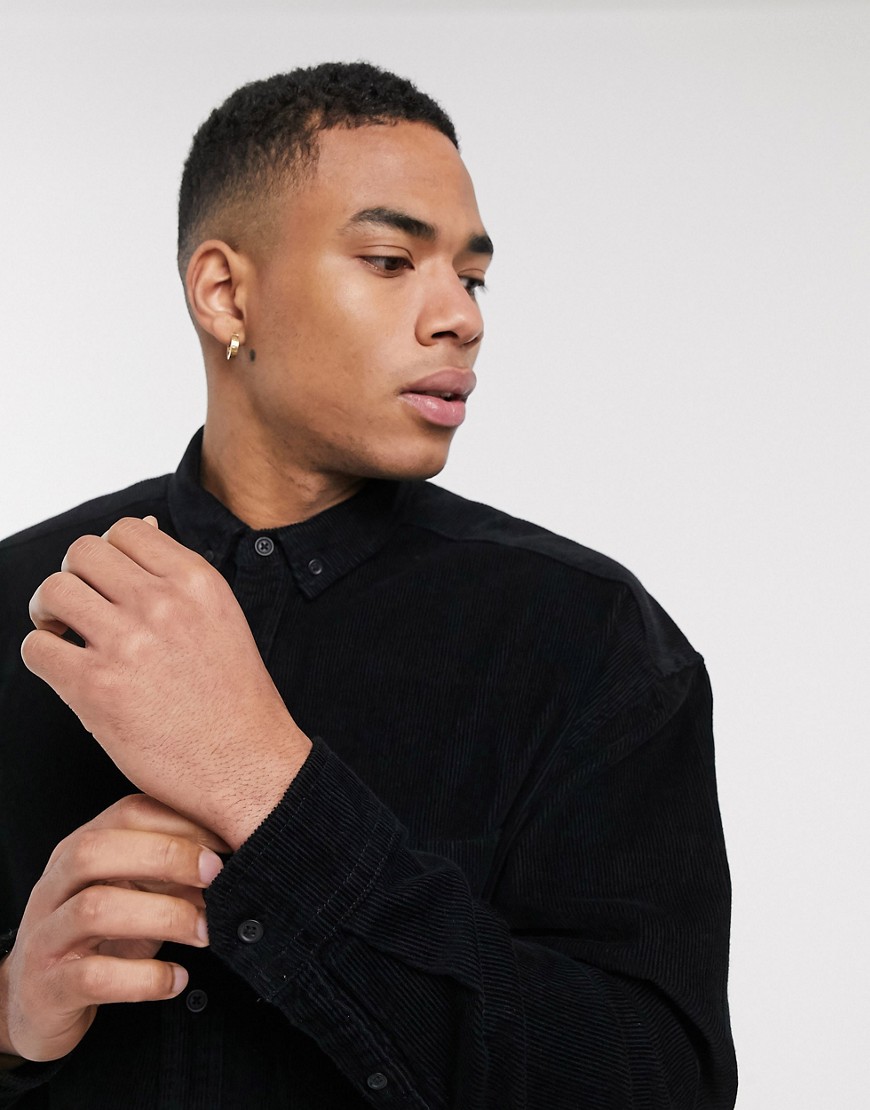 Czarna koszula sztruksowa oversize w stylu lat 90 S