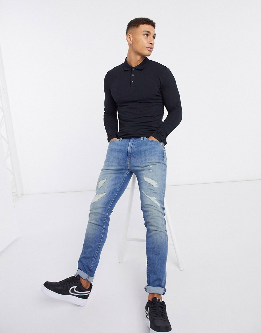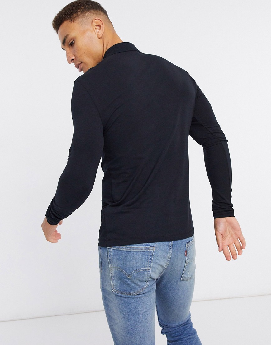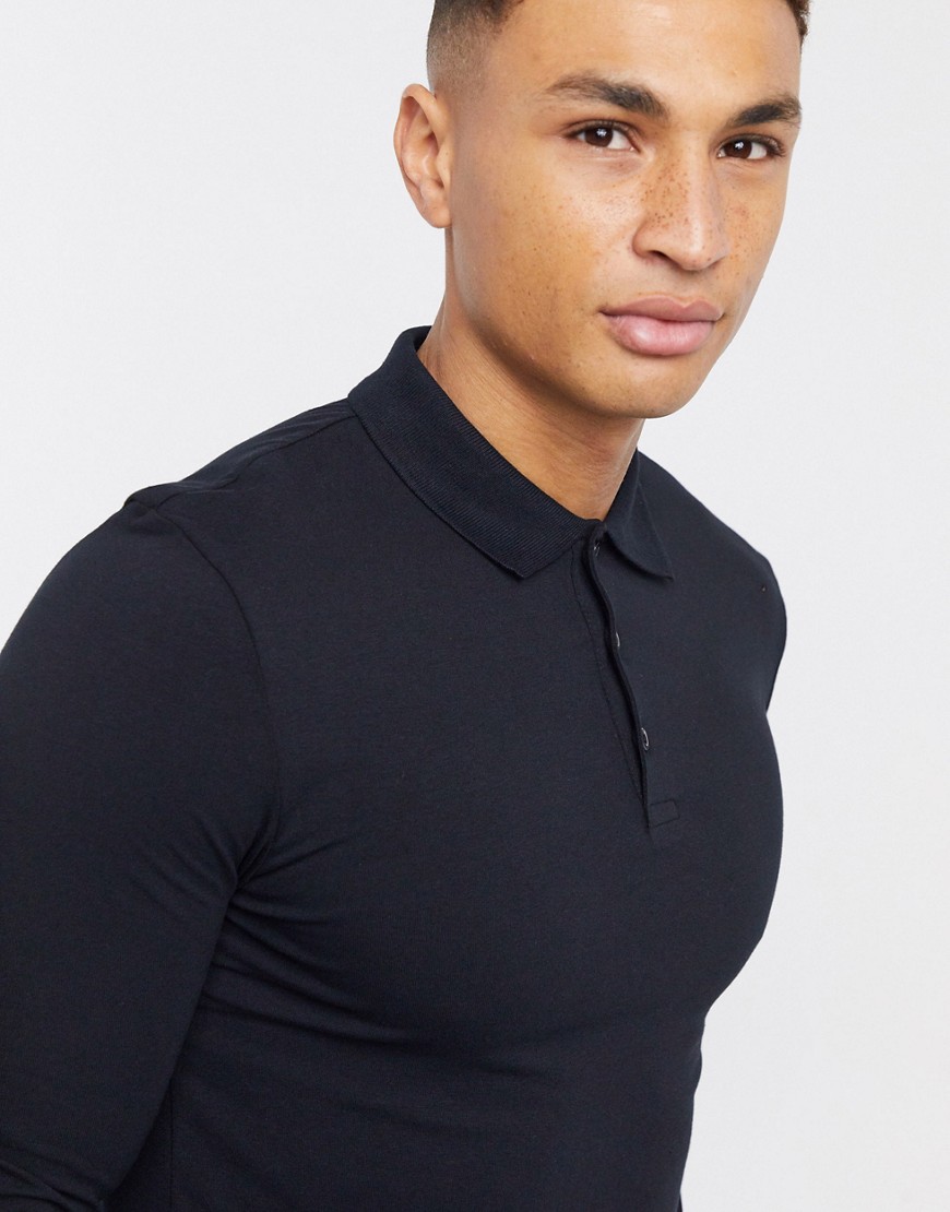 Czarna koszulka polo długi rękaw longlseeve muscle fit M