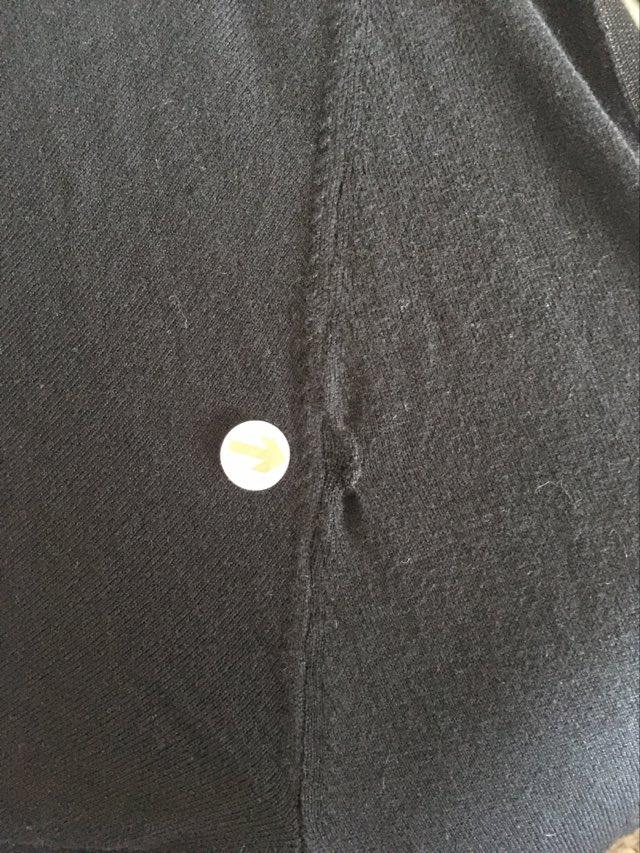 - Defekt: zaszyta dziurka na lewym rękawie przy szwie z przodu – zdjęcie w galerii przedmiotu.