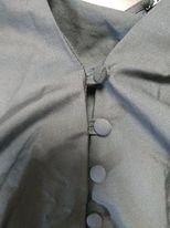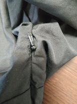 - defekt po drobnej korekcie krawieckiej – doszyty pierszy guzik i zaszyta niewielka dziurka przy zamku