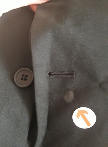 - DEFEKT: plamka przy dziurce od guzika (zdjęcie)