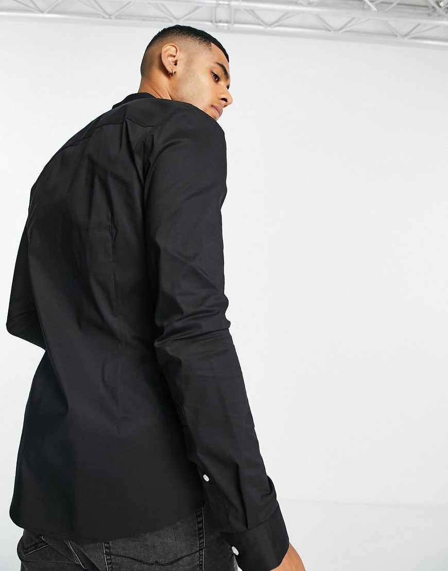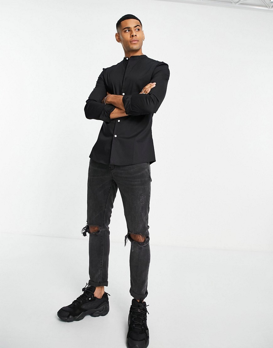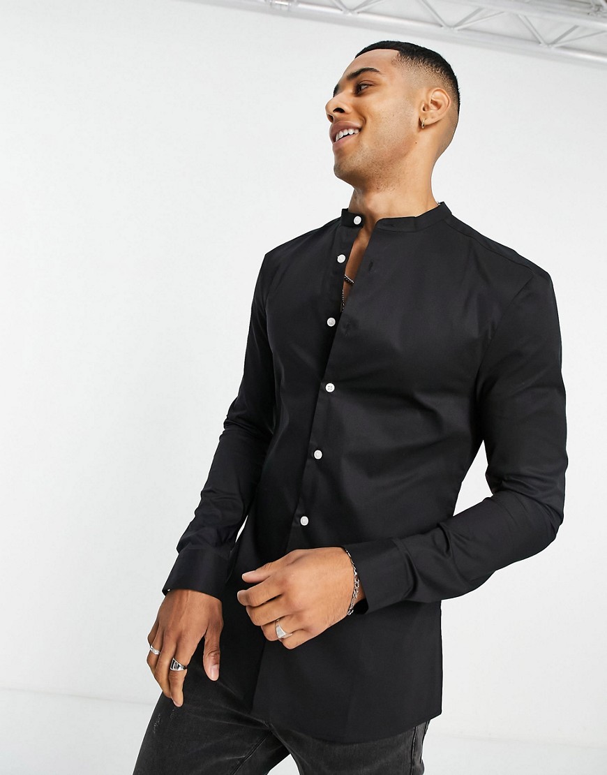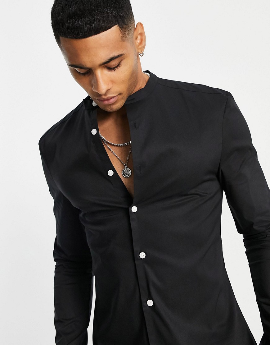 Czarna męska koszula ze stójką o kroju podkreślającym sylwetkę M