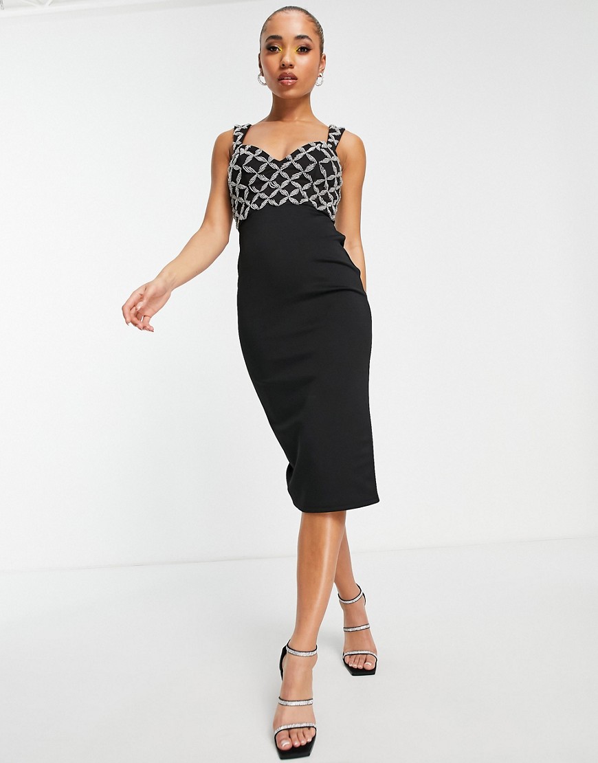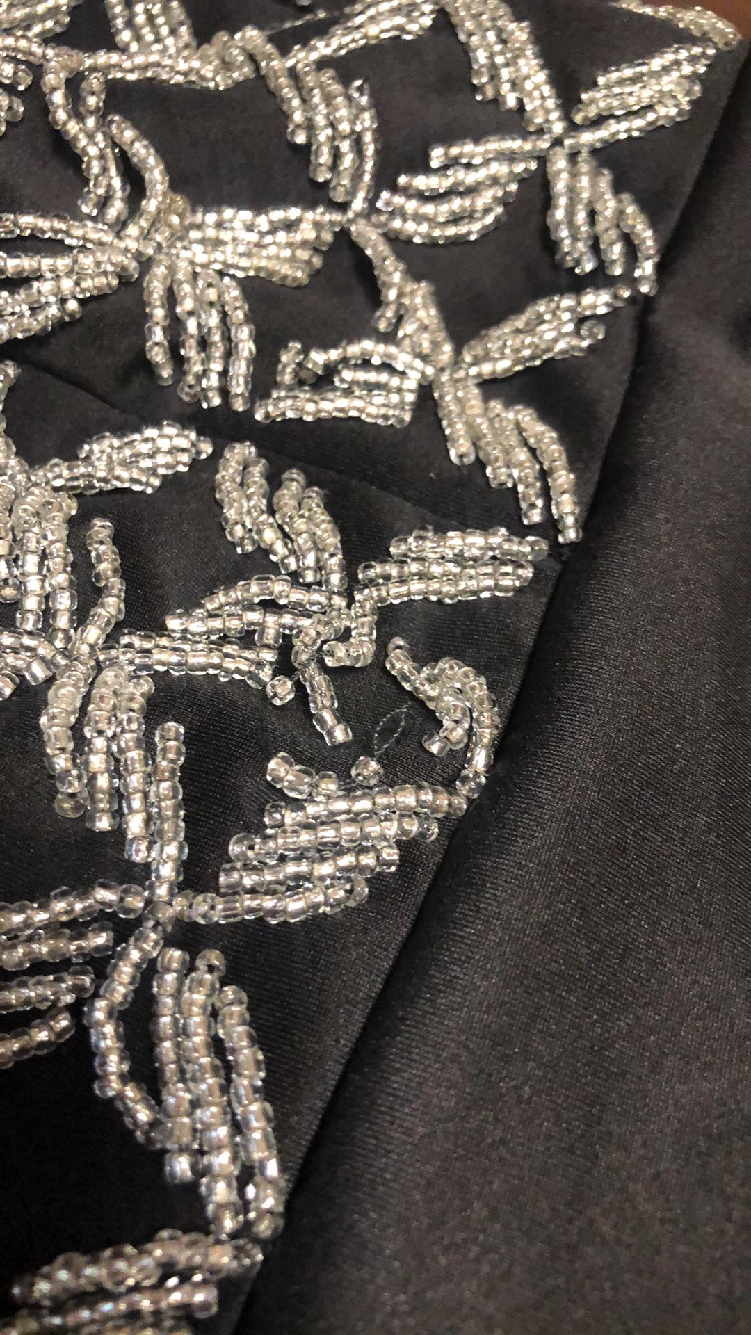 Czarna ołówkowa sukienka midi koraliki defekt 44
