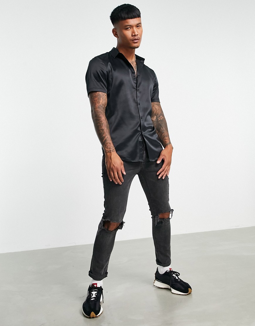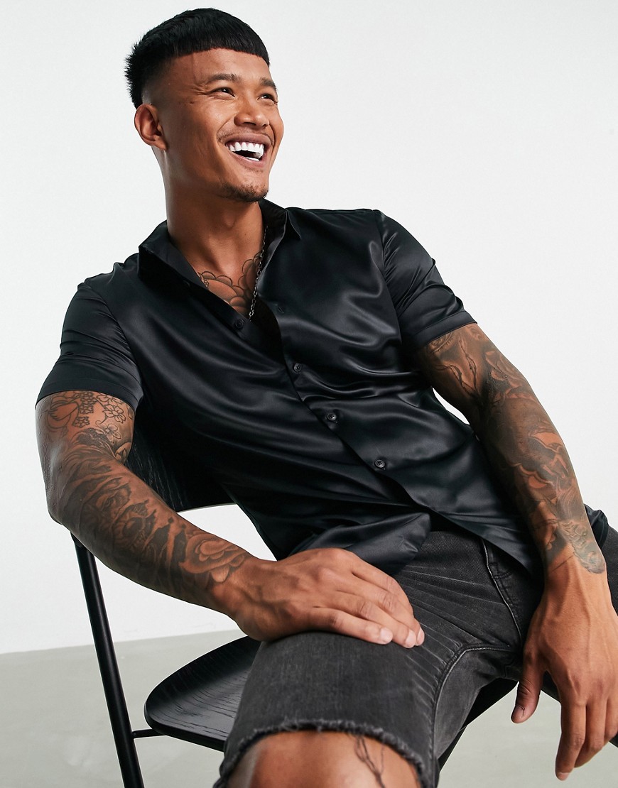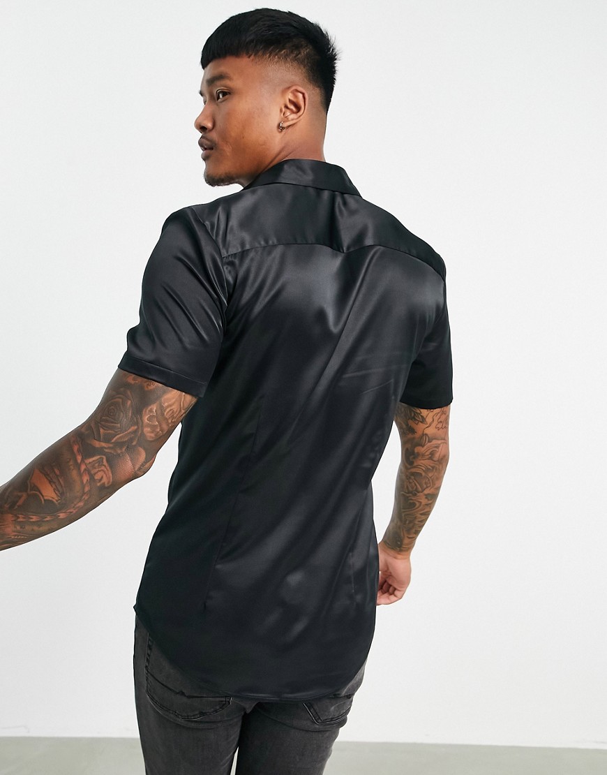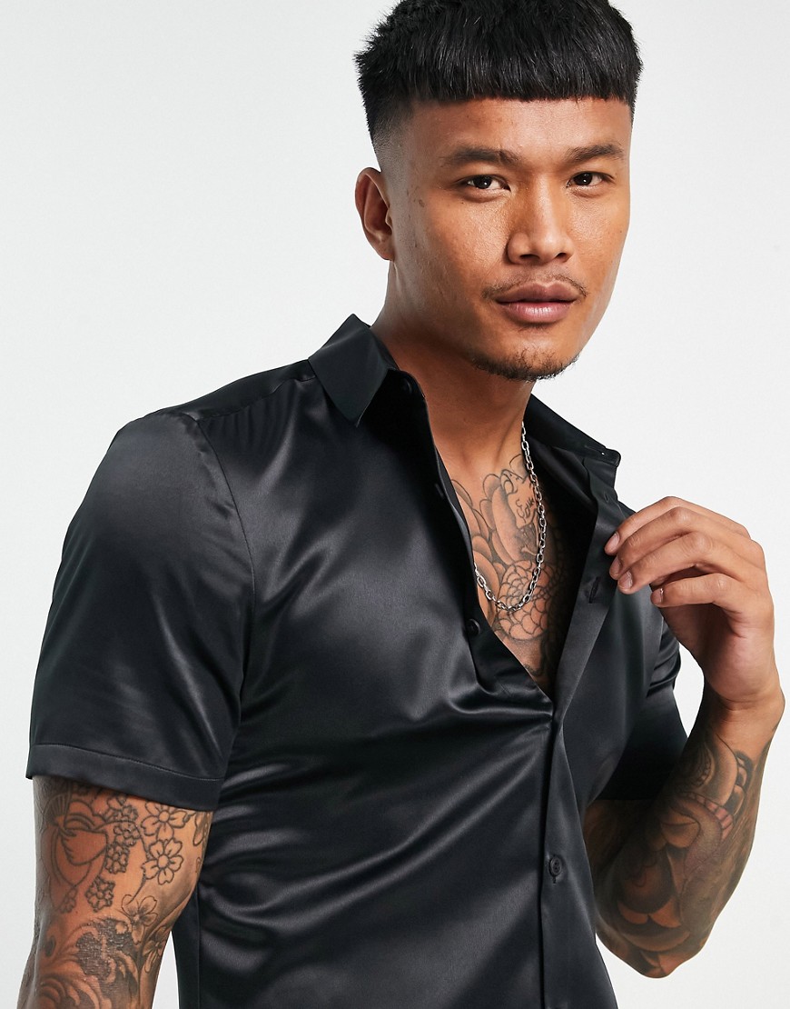 Czarna satynowa koszula slim fit M