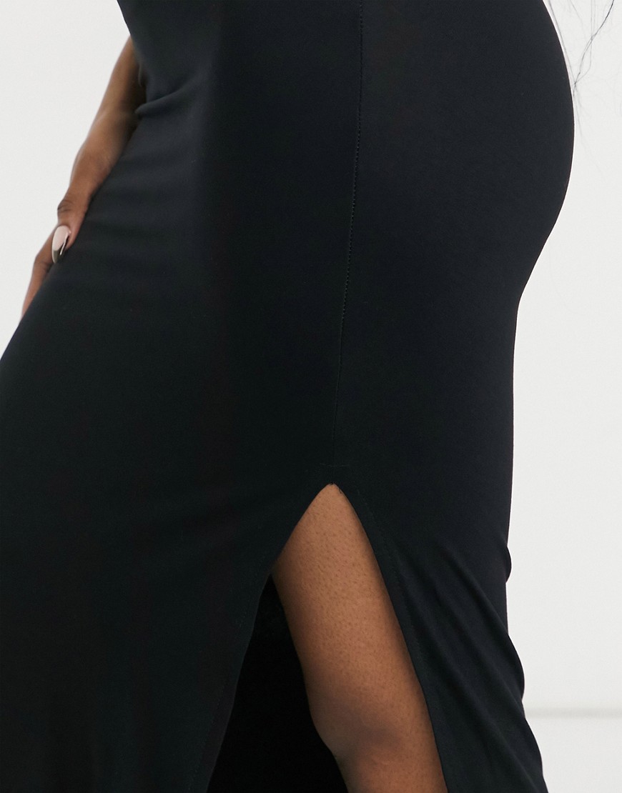 Czarna spódnica midi z dżerseju z rozcięciem 40