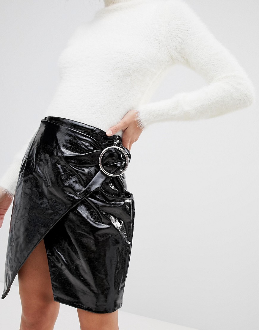 Czarna Spódnica mini wysoki połysk M 38