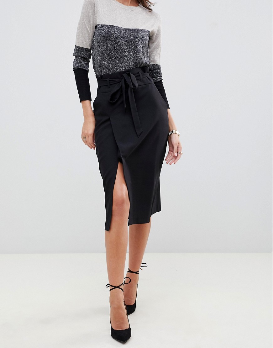 Czarna spódnica ołówkowa z wiązaniem w talii 36
