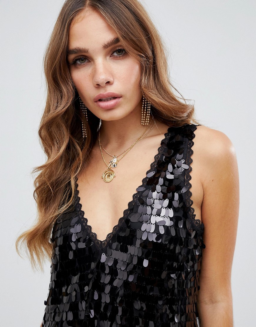 Czarna Sukienka cekinowa oversize XS 34