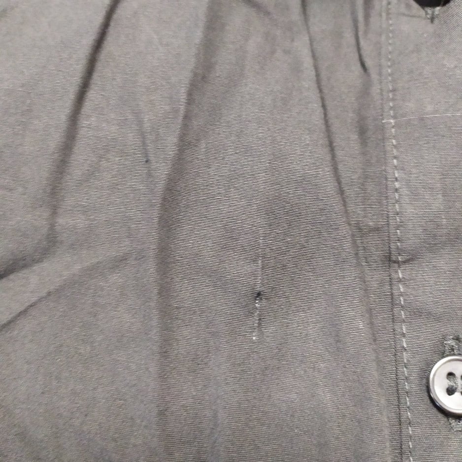 - Defekt : zaciągnięta nitka z przodu, przy zapięciu na guziki, zdjęcie w galerii produktu